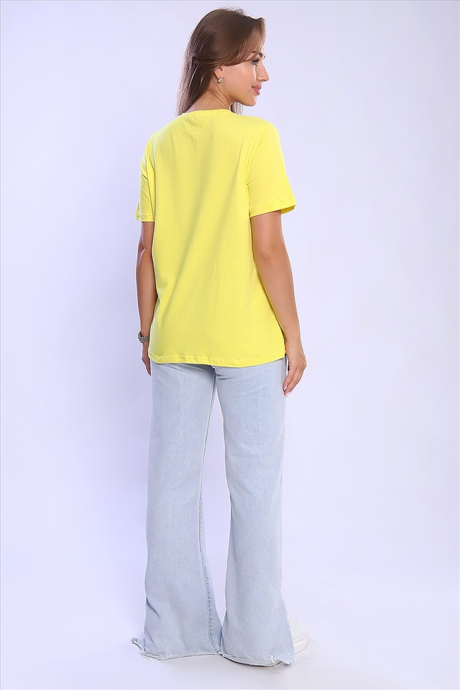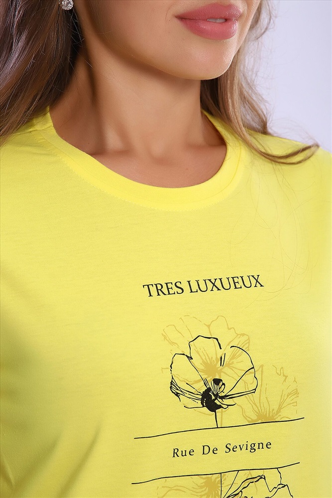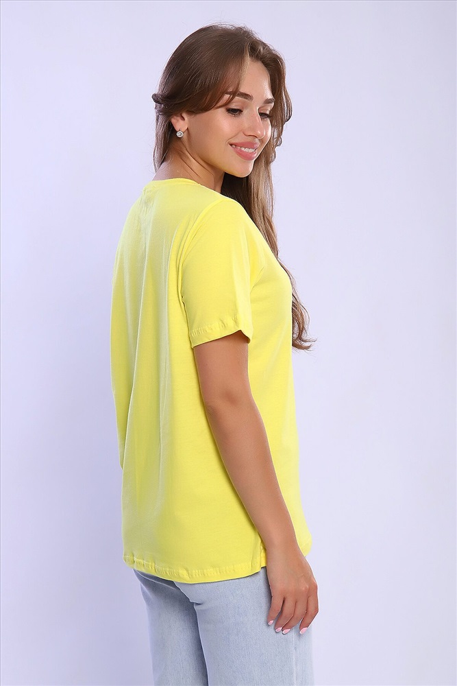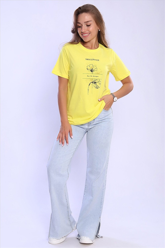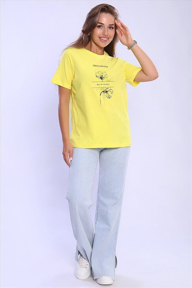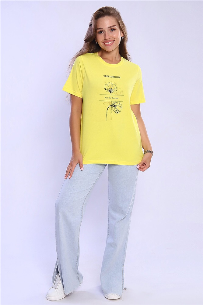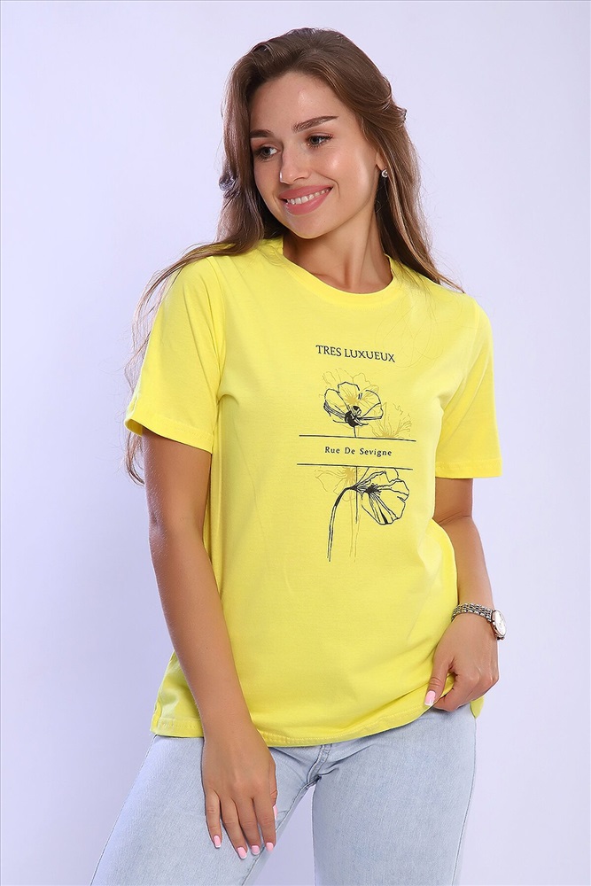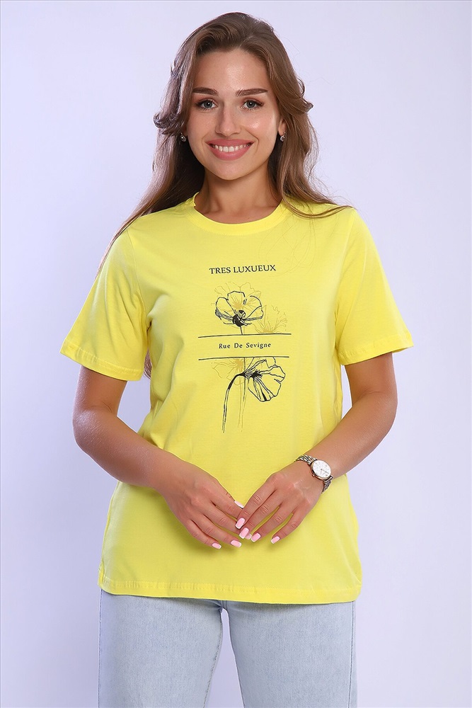 ID товара: 926802 Состав: 100% Хлопок Сезон: Весна/Лето Длина: Средняя Фасон: Свободный крой Рукав: короткие Вырез горловины: Округлый Рисунок: Надпись Основная ткань: Хлопок Стиль: Повседневный Вид ткани: Кулирка Страна бренда: Россия Страна производства: Россия Женская футболка с круглым вырезом горловины и короткими рукавами. Такая модель подойдет абсолютно всем и станет необходимой вещью в вашем гардеробе. Комментарии к товару