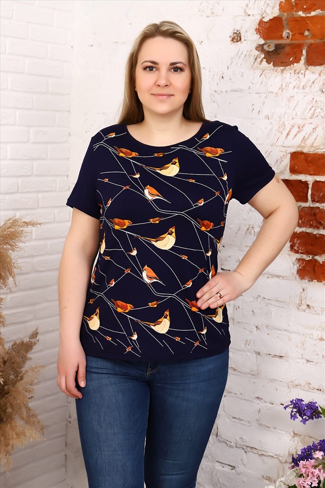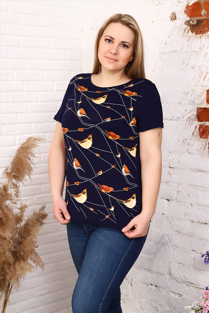 ID товара: 648936 Состав: 97% Вискоза, 3% Спандекс Сезон: Весна/Лето Длина: Средняя Фасон: Прямой Рукав: Короткий Вид застежки: Нет Вырез горловины: Круглый Рисунок: птицы Тип карманов: Без карманов Декоративные элементы: Печатный принт Основная ткань: Вискоза | Вискоза Стиль: Повседневный Страна бренда: Россия Страна производства: Россия Футболка женская из вискозного полотна. Футболка полуприлигающего силуэта, с круглым вырезом горловины, короткий рукав. Подходит для ежедневного гардероба или для уютного вечера, может сочетаться с брюками, а так же юбкой. Комментарии к товару