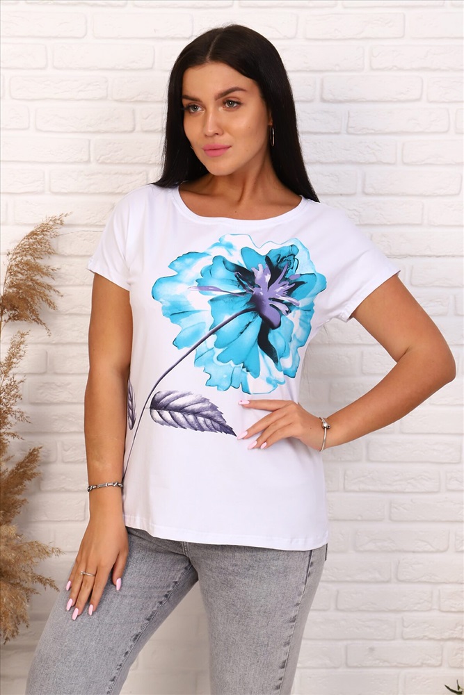 ID товара: 661178 Состав: 100% Хлопок Сезон: Весна/Лето Длина: Средняя Фасон: Повседневный Рукав: Короткий Вырез горловины: Круглый Рисунок: цветочный Основная ткань: Хлопок | Кулирка Страна бренда: Россия Страна производства: Россия Футболка женская свободного силуэта, с цельнокроеным спущенным рукавом. Спинка оформлена рельефами. Длина изделия до середины бедра. Полочка декорирована принтом в виде цветка. Идеально подходит к брюкам или юбке Комментарии к товару