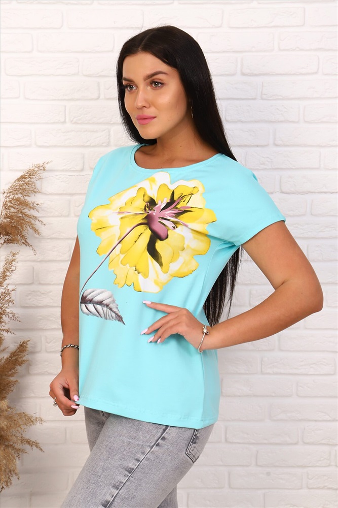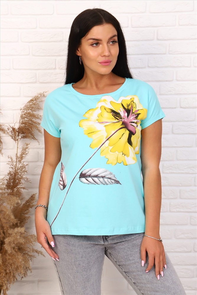 ID товара: 661179 Состав: 100% Хлопок Сезон: Весна/Лето Длина: Средняя Фасон: Повседневный Рукав: Короткий Вырез горловины: Круглый Рисунок: цветочный Основная ткань: Хлопок | Кулирка Страна бренда: Россия Страна производства: Россия Футболка женская свободного силуэта, с цельнокроеным спущенным рукавом. Спинка оформлена рельефами. Длина изделия до середины бедра. Полочка декорирована принтом в виде цветка. Идеально подходит к брюкам или юбке Комментарии к товару