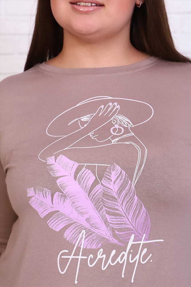 Страна производства: Россия Футболка женская из вискозы. Украшена печатью, рукав 3/4. На модели 52 размер