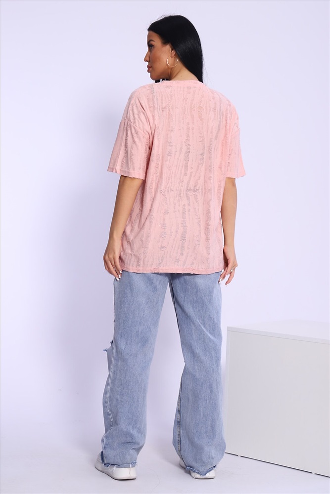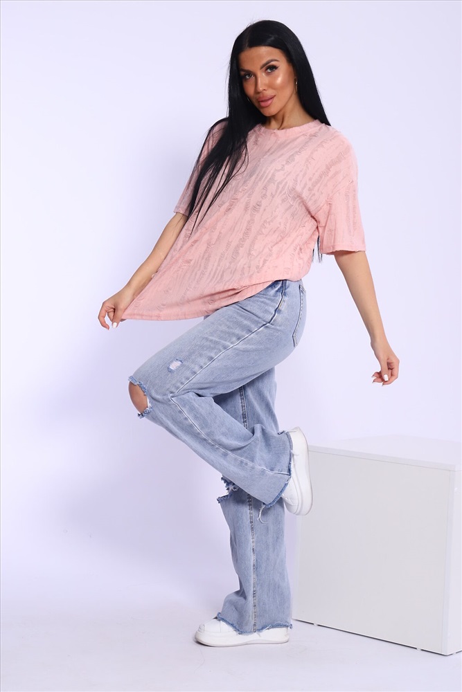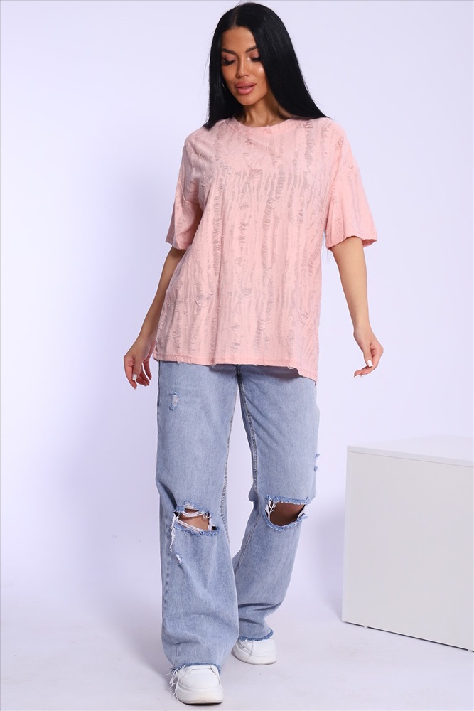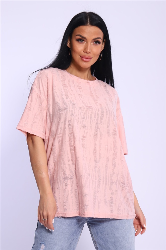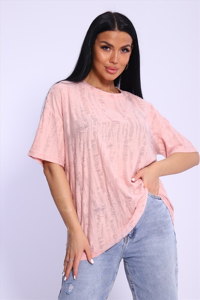 ID товара: 999099 Состав: 65% Полиэстер, 35% Вискоза Сезон: Весна/Лето Фасон: Оверсайз Рукав: До локтя Вырез горловины: Круглый Вид ткани: Смесовая ткань Страна бренда: Россия Страна производства: Китай Футболка двухслойная с рваниной, oversize. Ткань футболки облегченная и подойдет для жаркого лета. Очень приятная к телу. На ткани имеются небольшие блестки, которые очень красиво мерцают на солнце. Популярный широкий крой и свободный стиль делают футболку удобной и универсальной. Футболку можно сочетать с любым образом. Прямой силуэт позволит носить ее на фитнес и для тренировок в спортзал, на дискотеку или вечеринку. Идеально подходит на каждый день. Рукав спущенный и не сковывает движения. Длина рукава указана от плечевого шва. Производство Китай. Комментарии к товару