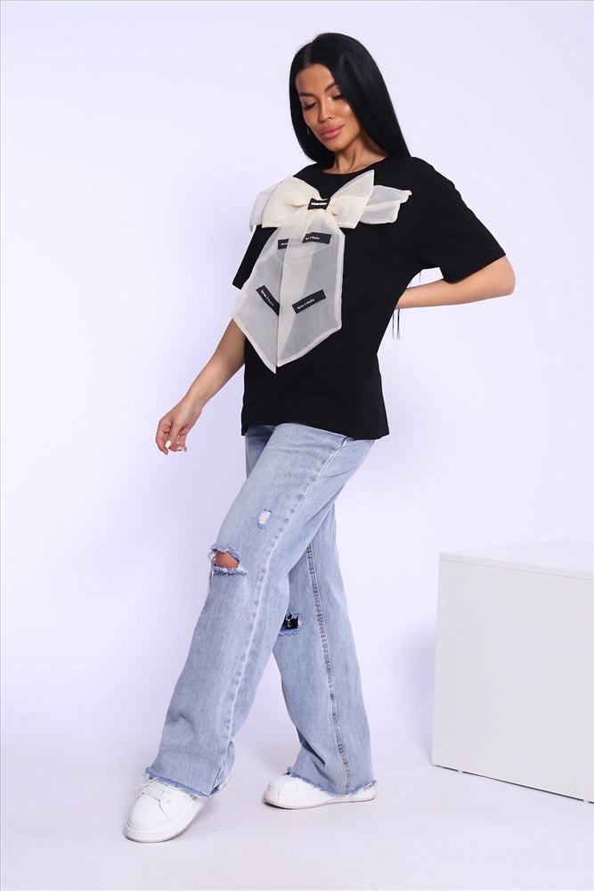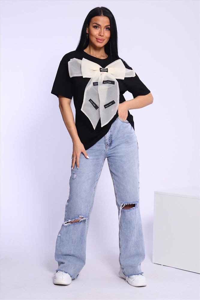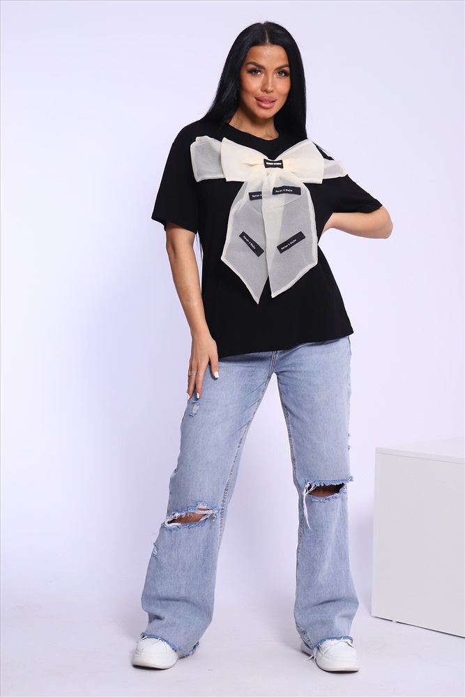 ID товара: 999089 Состав: 85% Хлопок, 15% Полиэстер Сезон: Весна/Лето Фасон: Прямой Рукав: До локтя Вырез горловины: Круглый Декоративные элементы: Бант Вид ткани: Кулирка с лайкрой Страна бренда: Россия Страна производства: Китай Модная и нарядная футболка с бантом - это стильный элемент вашего гардероба. Бант из тонкой ткани и хорошо держит форму. Футболка с бантом сделает образ изысканным и уникальным. Благодаря уникальному дизайну будет незаменимым элементом вашего гардероба. Подойдет на день рождение, для офиса, как вечерняя, праздничная и повседневная одежда. Рукав спущенный и не сковывает движения. Длина рукава указана от плечевого шва. Перед стиркой вывернуть наизнанку. Производство Китай. Комментарии к товару