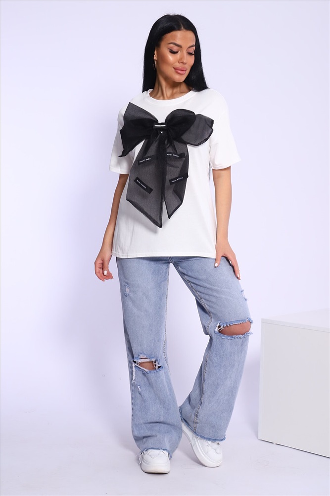 ID товара: 999090 Состав: 85% Хлопок, 15% Полиэстер Сезон: Весна/Лето Фасон: Прямой Рукав: До локтя Вырез горловины: Круглый Декоративные элементы: Бант Вид ткани: Кулирка с лайкрой Страна бренда: Россия Страна производства: Китай Модная и нарядная футболка с бантом - это стильный элемент вашего гардероба. Бант из тонкой ткани и хорошо держит форму. Футболка с бантом сделает образ изысканным и уникальным. Благодаря уникальному дизайну будет незаменимым элементом вашего гардероба. Подойдет на день рождение, для офиса, как вечерняя, праздничная и повседневная одежда. Рукав спущенный и не сковывает движения. Длина рукава указана от плечевого шва. Перед стиркой вывернуть наизнанку. Производство Китай. Комментарии к товару