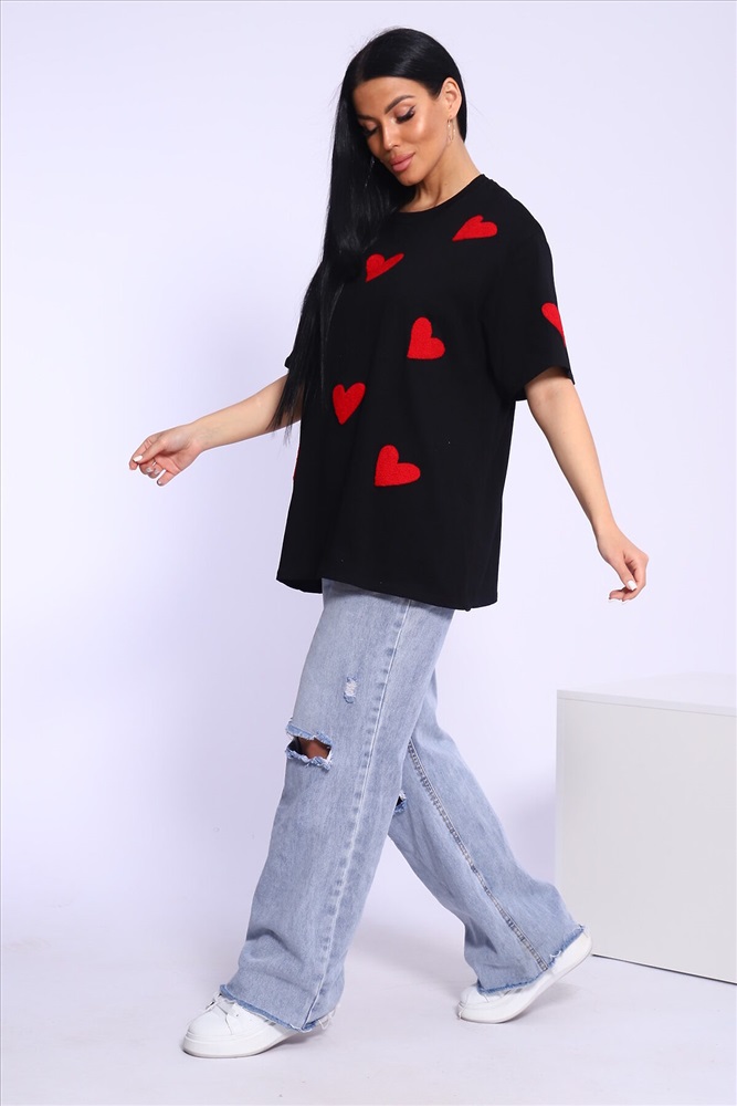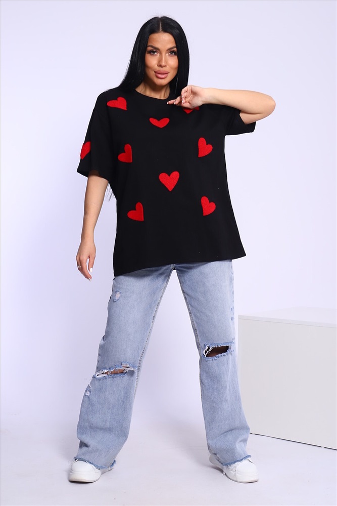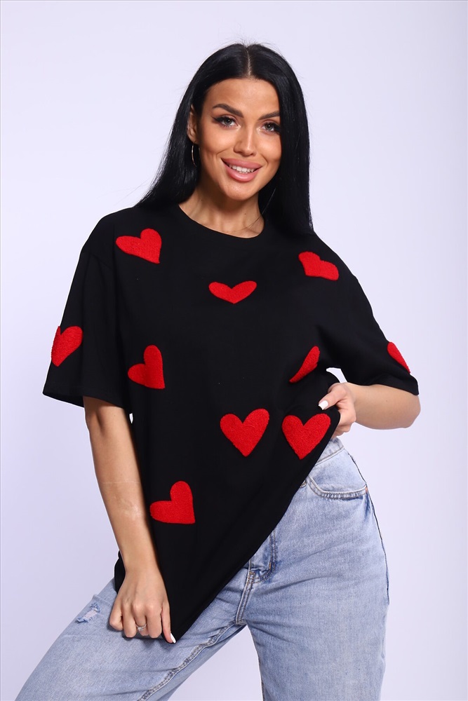 ID товара: 999077 Состав: 100% Хлопок Сезон: Весна/Лето Фасон: Оверсайз Рукав: Короткий Вырез горловины: Круглый Рисунок: Сердечки Вид ткани: Кулирка пенье Страна бренда: Россия Страна производства: Россия Футболка женская oversize с вышивкой сердечки подходит всем типам фигур. Изготовлена из хлопка, очень плотная и не просвечивает. Свободная посадка, прямой крой, спущенное плечо, длинные рукава, удобно носить навыпуск или заправлять. Хлопковая базовая oversize футболка отлично подойдёт для создания повседневных образов. Длина рукава указана от плечевого шва. Производство Китай. Комментарии к товару