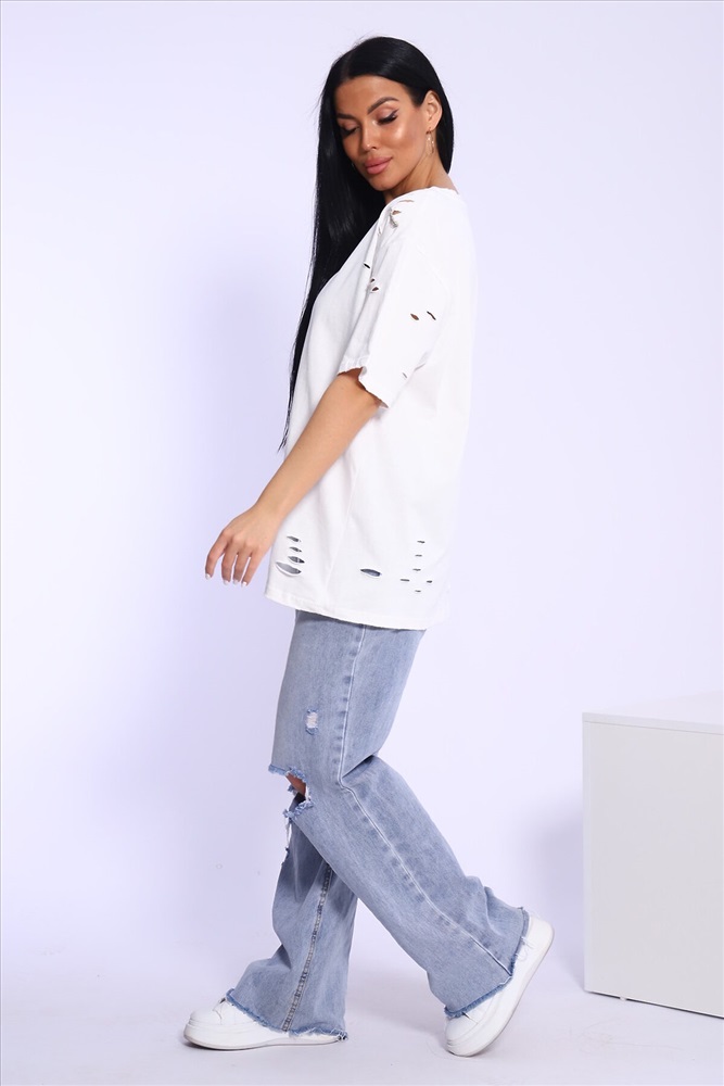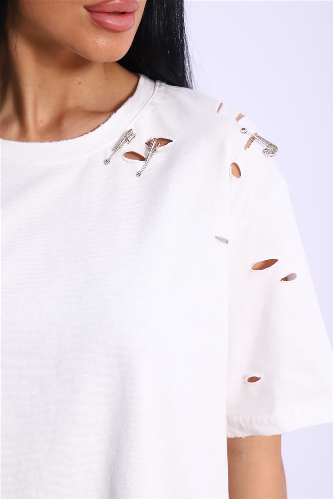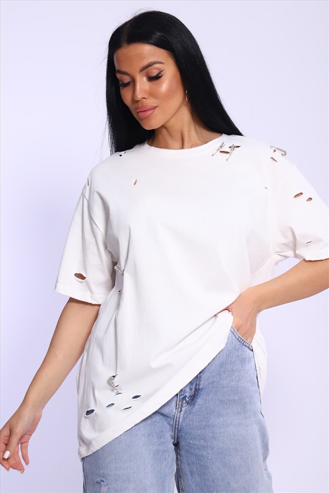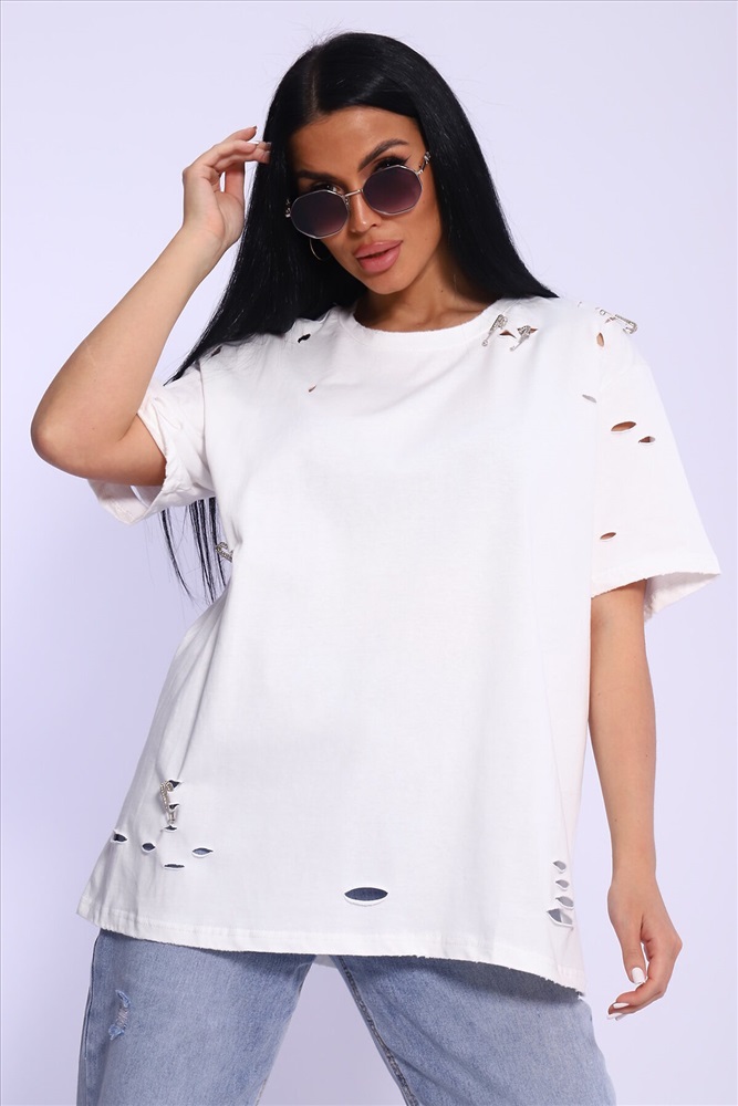 ID товара: 999074 Состав: 100% Хлопок Сезон: Весна/Лето Фасон: Оверсайз Рукав: Короткие Вырез горловины: Круглый Вид ткани: Кулирка пенье Страна бренда: Россия Страна производства: Россия Рваная женская футболка с булавками. Изготовлена из хлопка, очень плотная и не просвечивает.Oversize подходит всем типам фигур. Свободная посадка и прямой крой дает возможность носить футболку на выпуск или заправлять. Футболка отлично подойдёт для создания повседневных образов. Дырки расположены на рукавах, плечах, спереди и сзади. Рукав спущенный и не сковывает движения. Длина рукава указана от плечевого шва. Производство Китай. Комментарии к товару