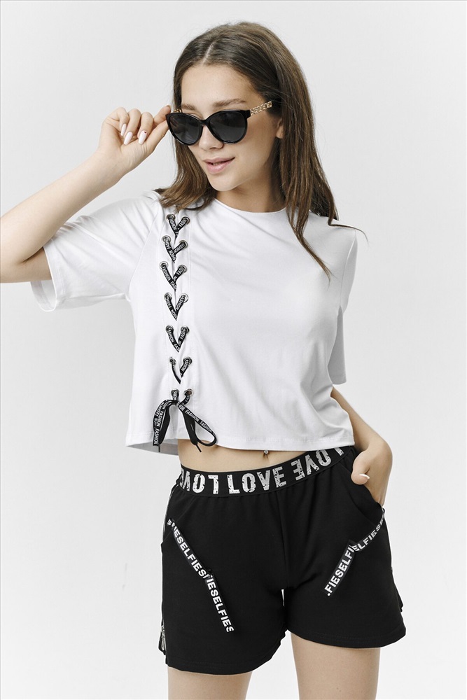 ID товара: 793384 Состав: Вискоза 92%, Лайкра 8% Сезон: Весна/Лето Длина: Укороченная Фасон: Свободный крой Рукав: Короткие Вырез горловины: Округлый Декоративные элементы: Шнуровка Основная ткань: Вискоза Стиль: Повседневный Страна бренда: Россия Страна производства: Россия Футболка женская укороченная, свободного силуэта с коротким рукавом, полочка оформлена декоративным элементом: люверсами со шнурком. Комментарии к товару