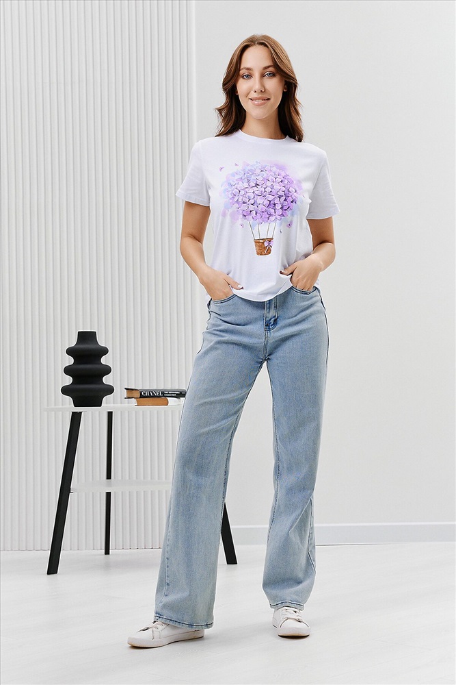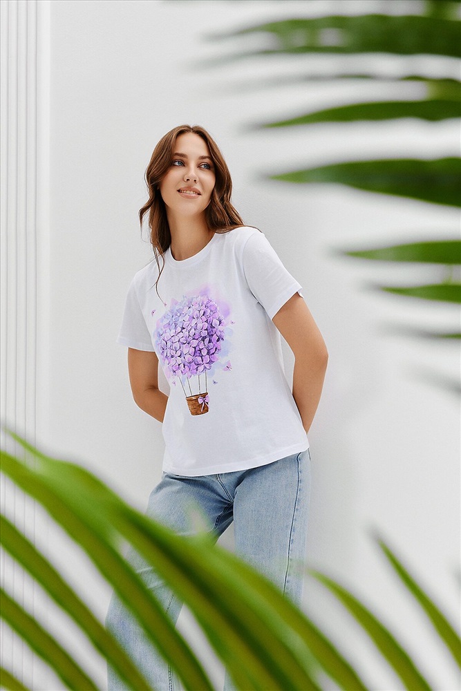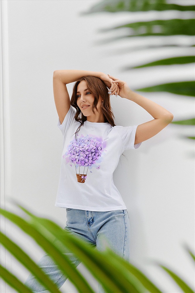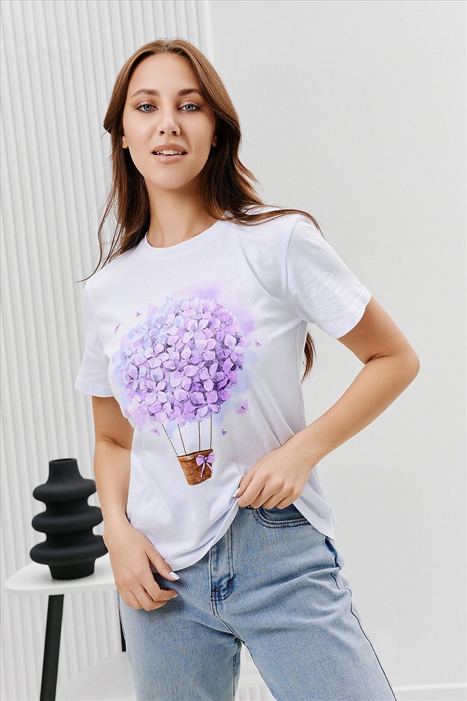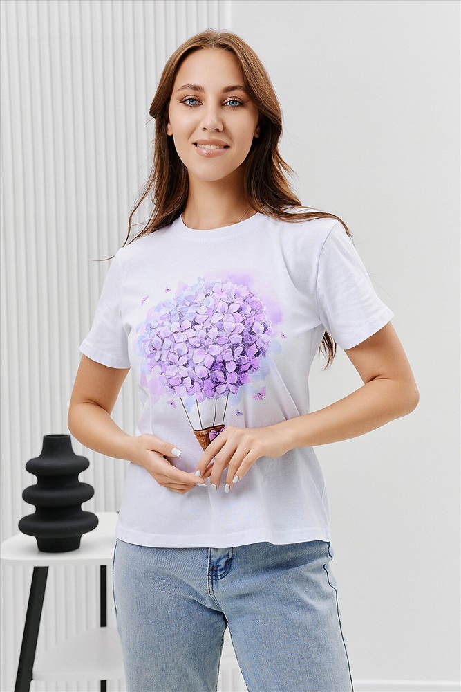 ID товара: 894463 Состав: Хлопок 100% Сезон: Весна/Лето Длина: Средняя Фасон: Прямой Рукав: Короткий Вырез горловины: Округлый Рисунок: цветочный Основная ткань: Хлопок Стиль: Повседневный Вид ткани: Кулирка Страна бренда: Россия Страна производства: Россия Футболка женская - это классика женского гардероба любой девушки. Это базовая модель с ярким принтом отлично смотрится с джинсами, юбками, брюками. Прямой силуэт, втачной рукав, горловина округлой формы обработана обтачкой из основного полотна. Комментарии к товару