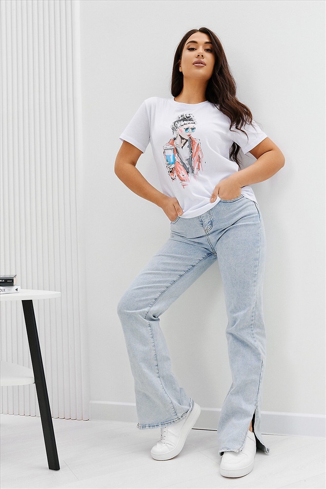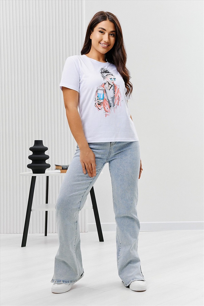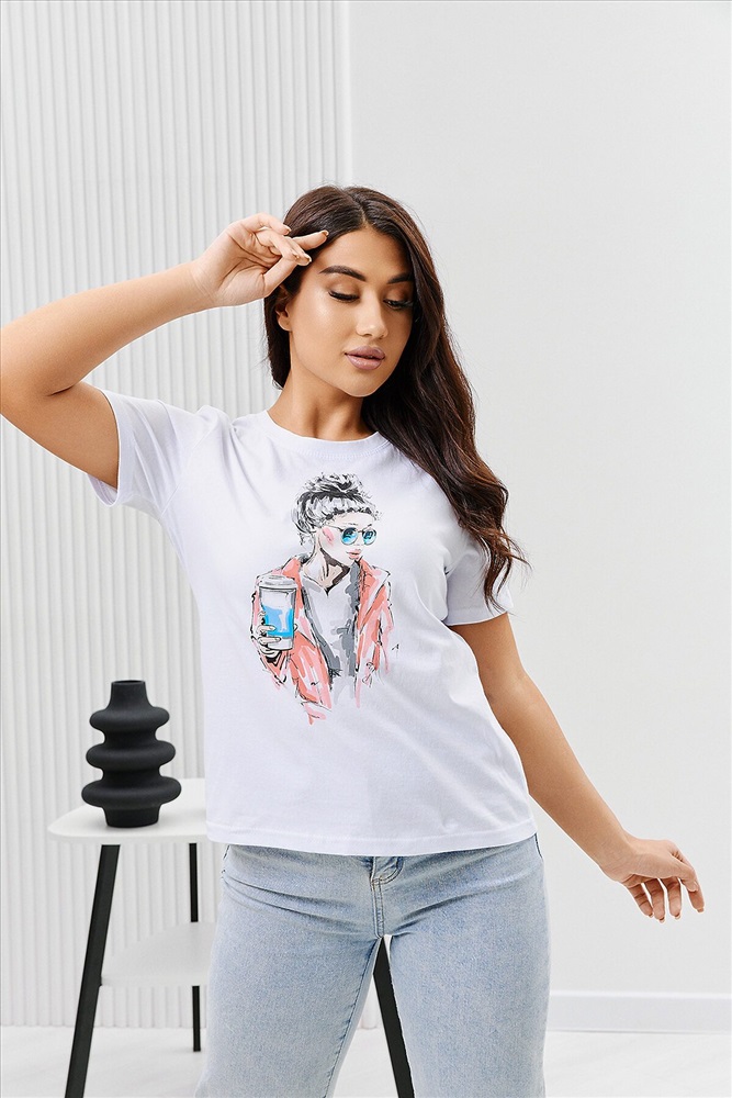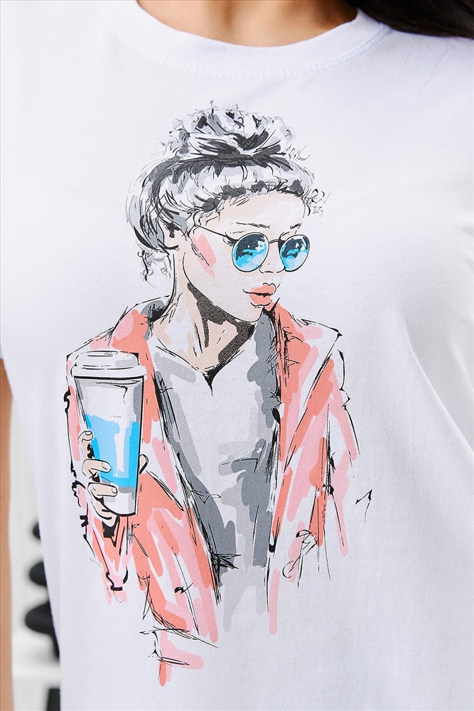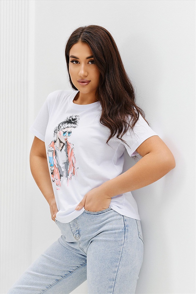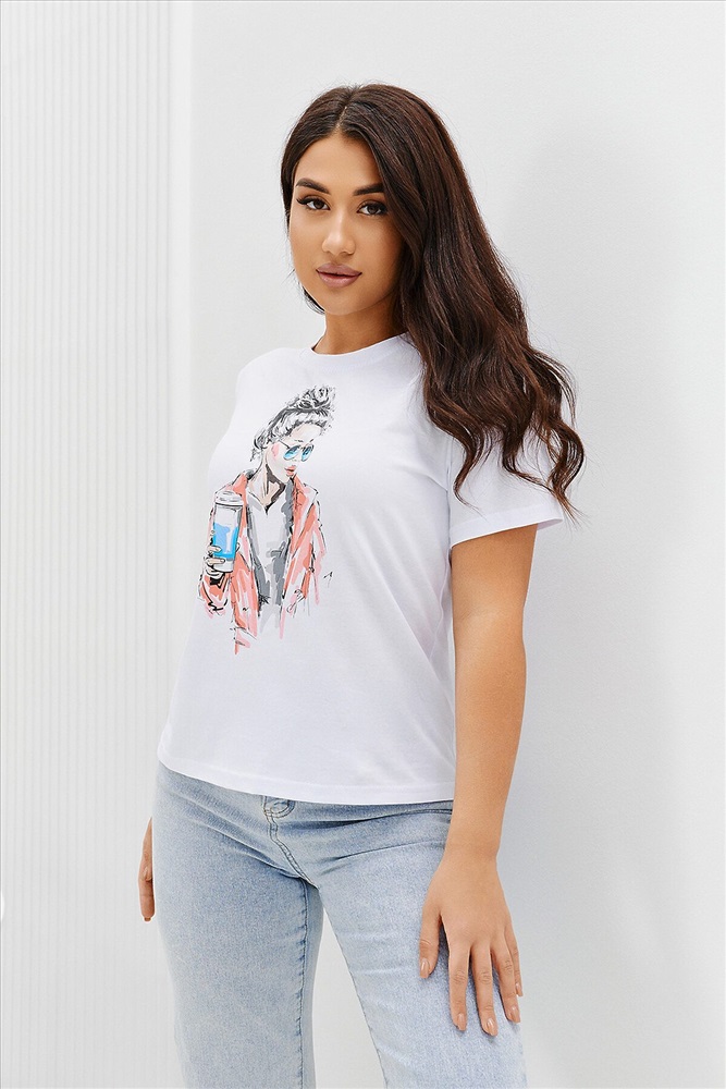 ID товара: 894465 Состав: Хлопок 100% Сезон: Весна/Лето Длина: Средняя Фасон: Прямой Рукав: Короткий Вырез горловины: Округлый Рисунок: Девушка Основная ткань: Хлопок Стиль: Повседневный Вид ткани: Кулирка Страна бренда: Россия Страна производства: Россия Футболка женская - это классика женского гардероба любой девушки. Это базовая модель с ярким принтом отлично смотрится с джинсами, юбками, брюками. Прямой силуэт, втачной рукав, горловина округлой формы обработана обтачкой из основного полотна. Комментарии к товару