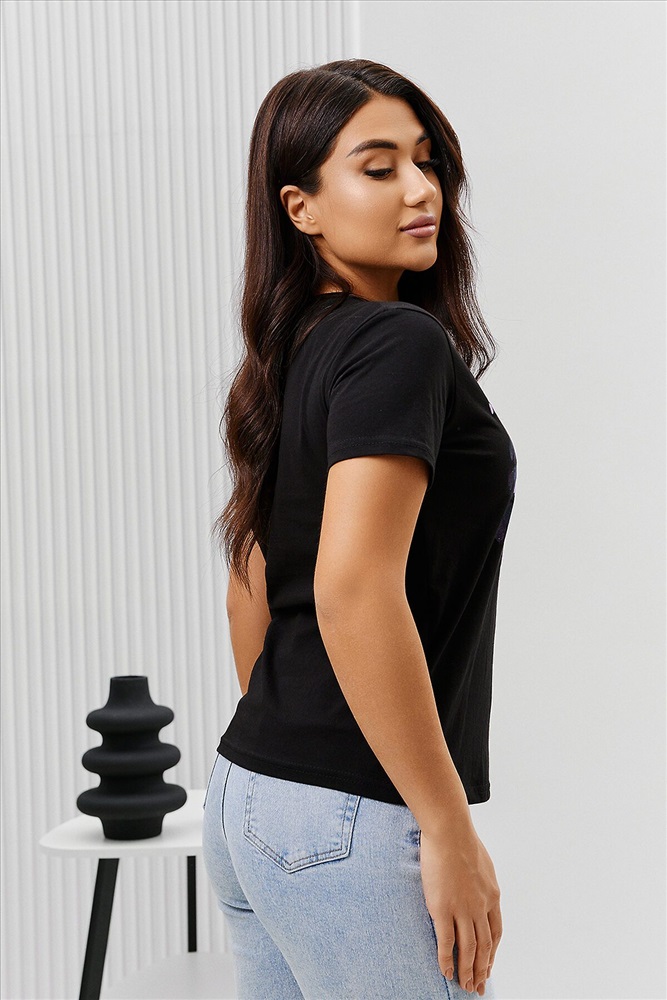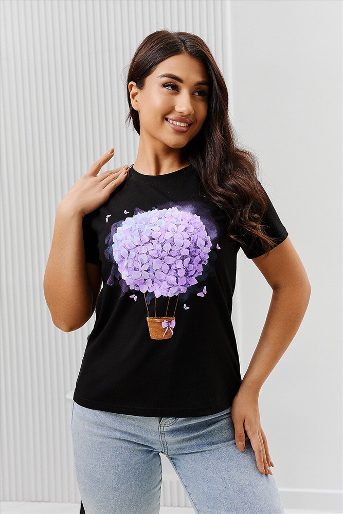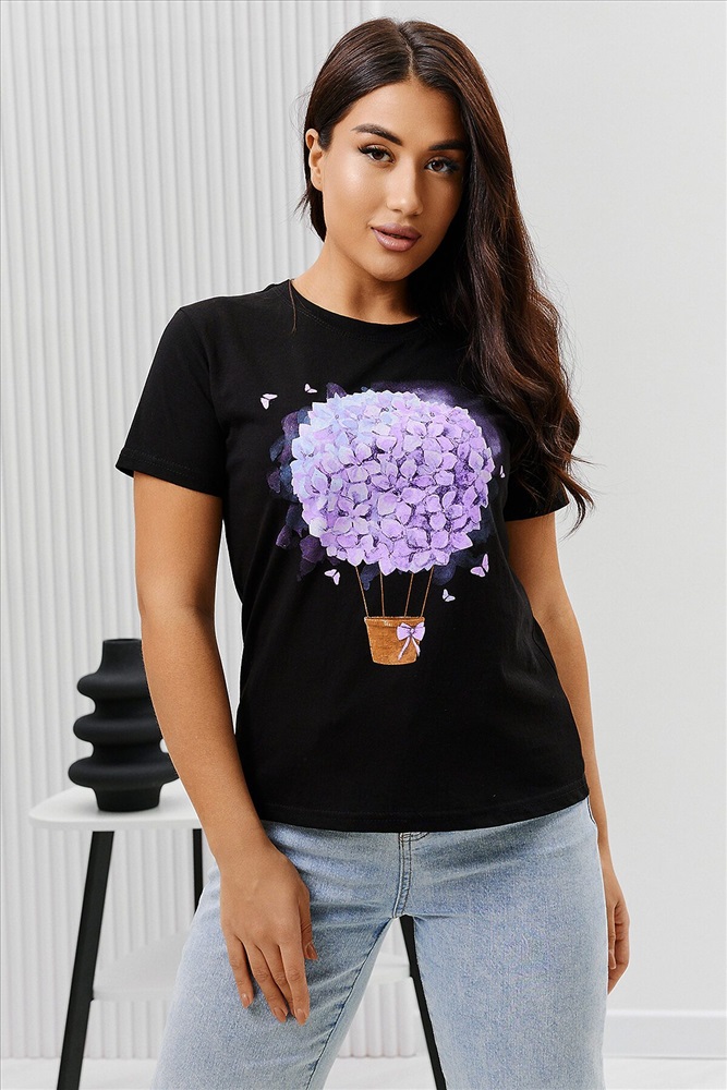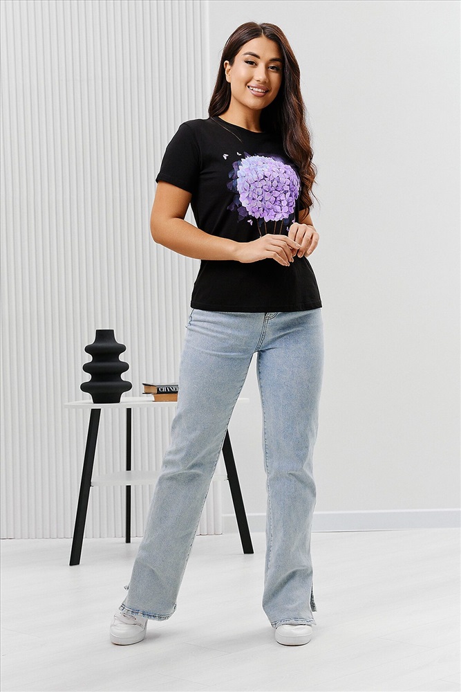 ID товара: 894471 Состав: Хлопок 100% Сезон: Весна/Лето Длина: Средняя Фасон: Прямой Рукав: Короткий Вырез горловины: Округлый Основная ткань: Хлопок Стиль: Повседневный Вид ткани: Кулирка Страна бренда: Россия Страна производства: Россия Футболка женская - это классика женского гардероба любой девушки. Это базовая модель с ярким принтом отлично смотрится с джинсами, юбками, брюками. Прямой силуэт, втачной рукав, горловина округлой формы обработана обтачкой из основного полотна. Комментарии к товару