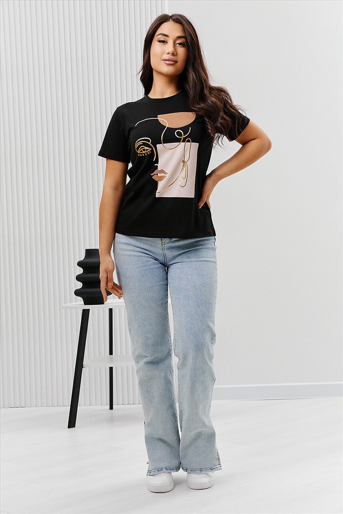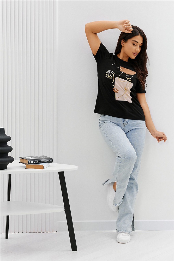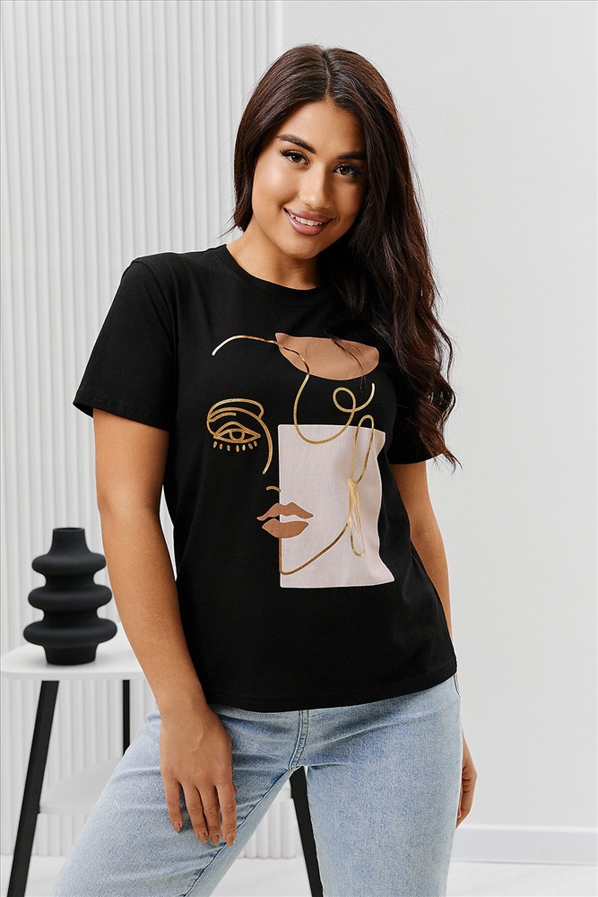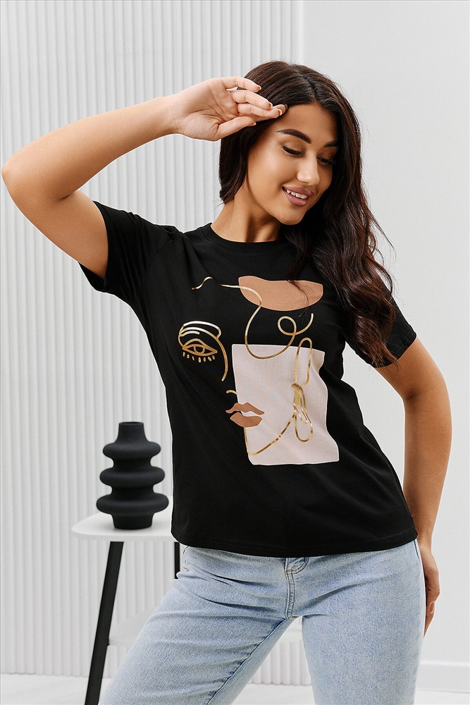 ID товара: 894472 Состав: Хлопок 100% Сезон: Весна/Лето Длина: Средняя Фасон: Прямой Рукав: Короткий Вырез горловины: Округлый Основная ткань: Хлопок Стиль: Повседневный Вид ткани: Кулирка Страна бренда: Россия Страна производства: Россия Футболка женская - это классика женского гардероба любой девушки. Это базовая модель с ярким принтом отлично смотрится с джинсами, юбками, брюками. Прямой силуэт, втачной рукав, горловина округлой формы обработана обтачкой из основного полотна. Комментарии к товару