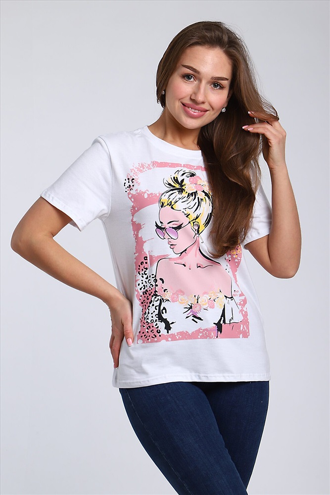 Производитель: НАТАЛИ ID товара: 978788 Состав: 100% Хлопок Сезон: Весна/Лето Длина: Средняя Фасон: Прямой Рукав: короткие Вырез горловины: Округлый Рисунок: Девушка Декоративные элементы: Принт Основная ткань: Хлопок Стиль: повседневный Вид ткани: Кулирка Страна бренда: Россия Страна производства: Россия