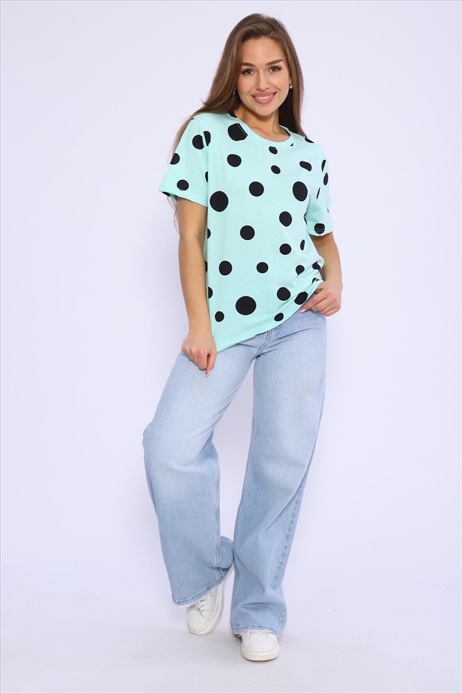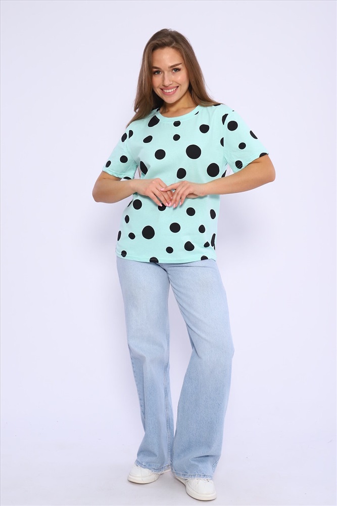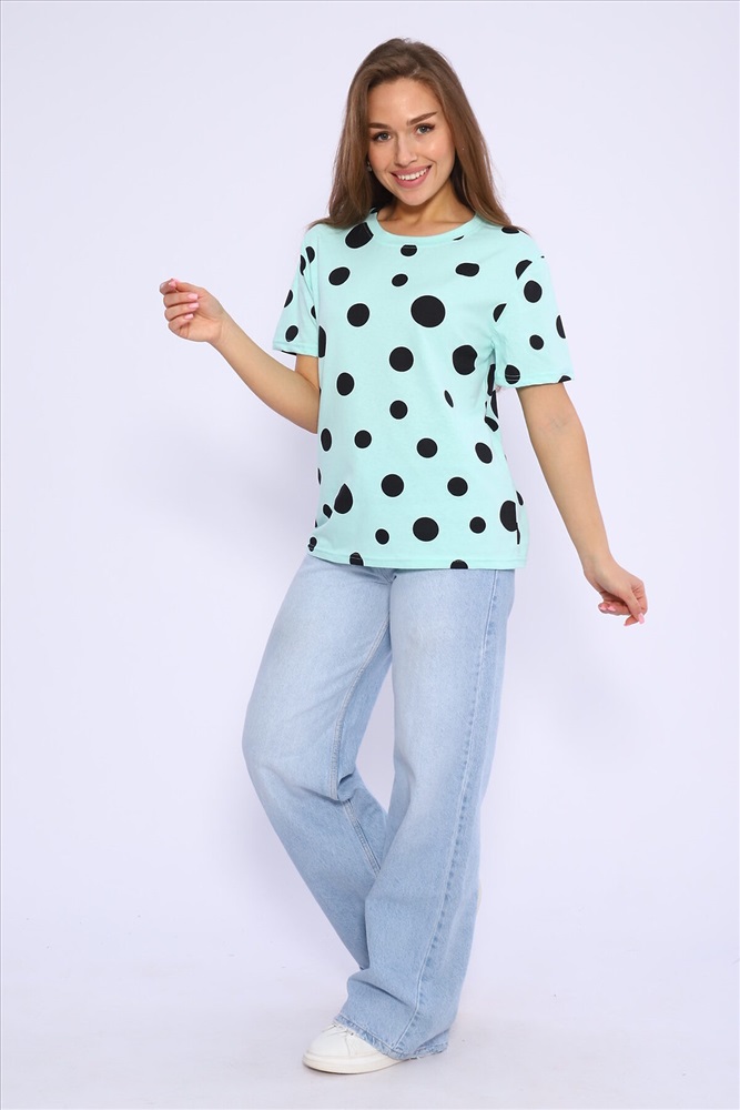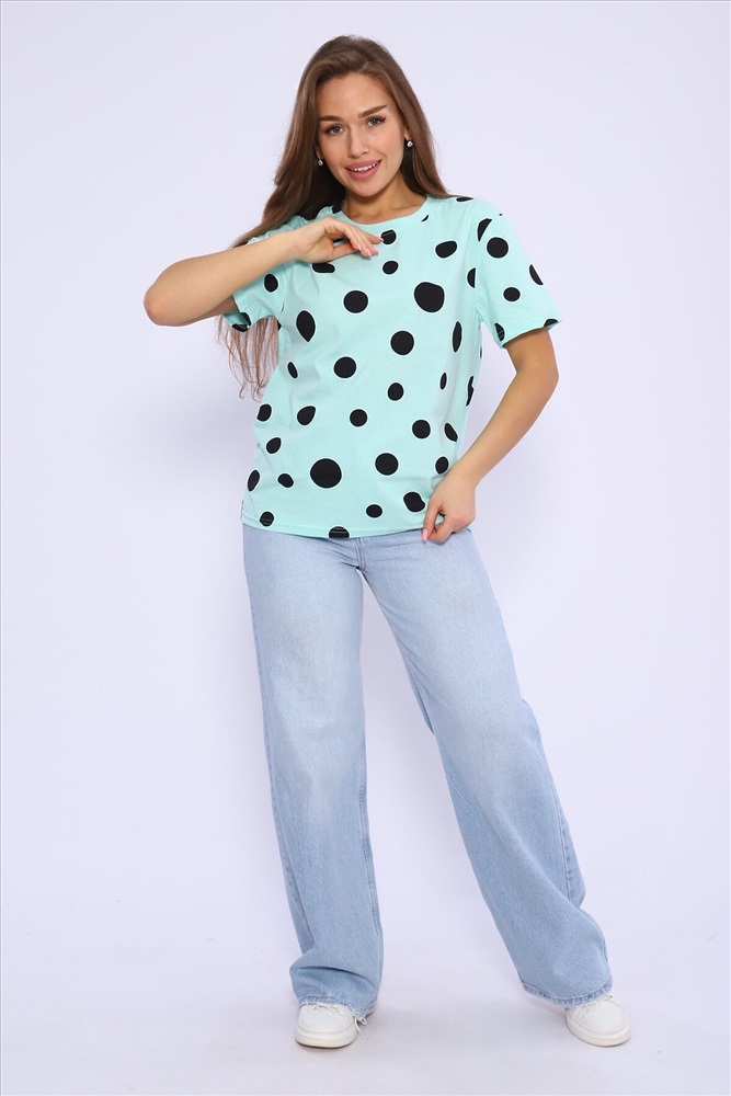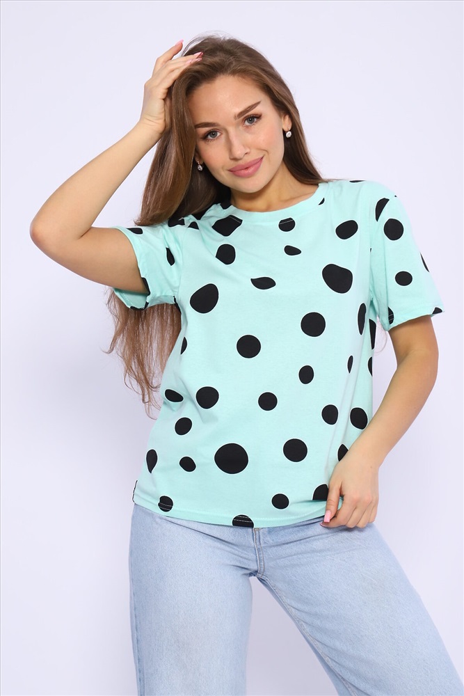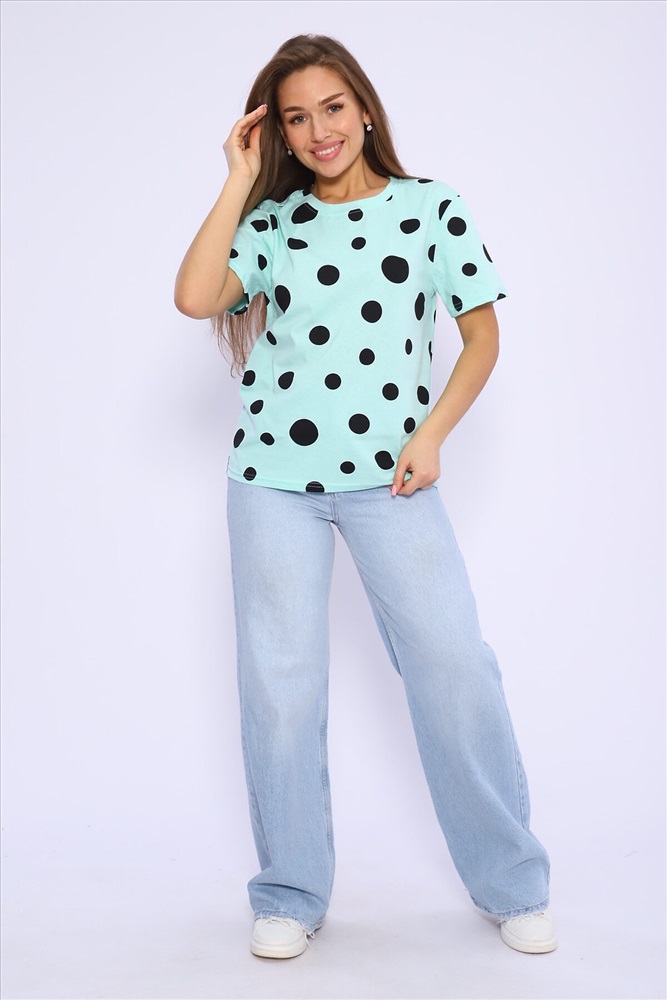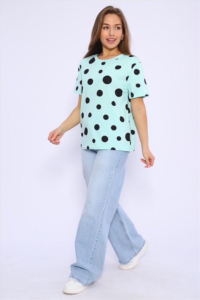 Производитель: НАТАЛИ ID товара: 1001615 Состав: 100% Хлопок Сезон: Весна/Лето Фасон: Свободный крой Рукав: Короткие Вырез горловины: Круглый Рисунок: Горох Вид ткани: Кулирка Страна бренда: Россия Страна производства: Россия