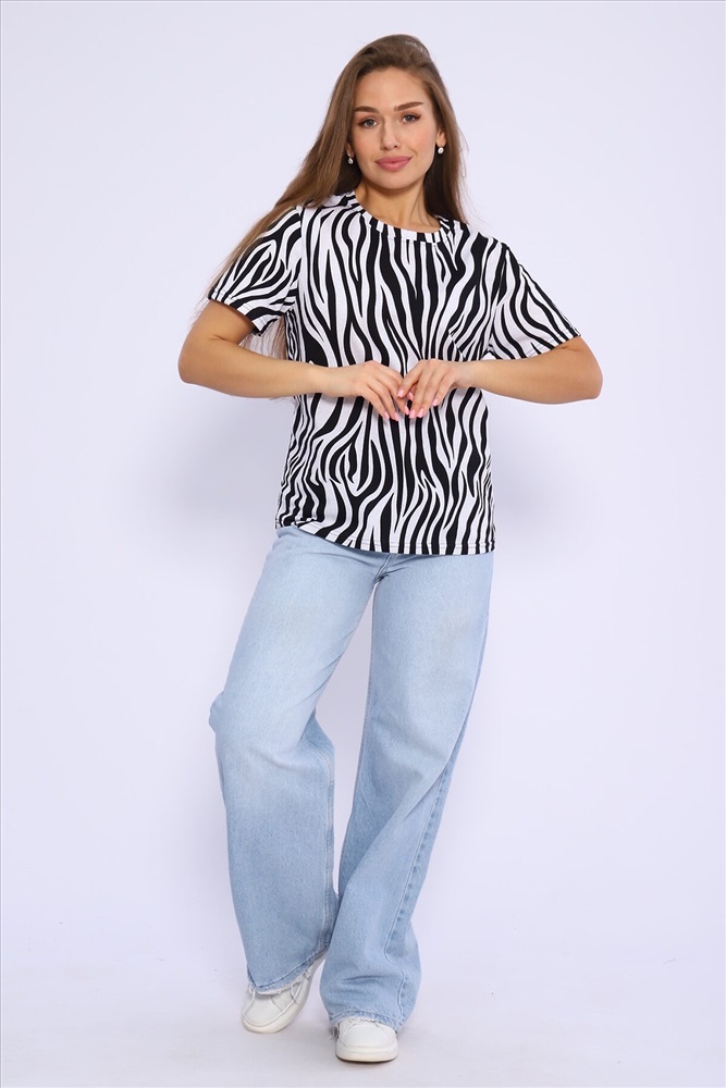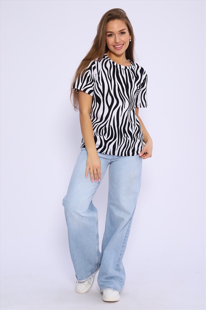 Производитель: НАТАЛИ ID товара: 1001616 Состав: 100% Хлопок Сезон: Весна/Лето Фасон: Свободный крой Рукав: Короткий Вырез горловины: Круглый Рисунок: Анималистичный Вид ткани: Кулирка Страна бренда: Россия Страна производства: Россия