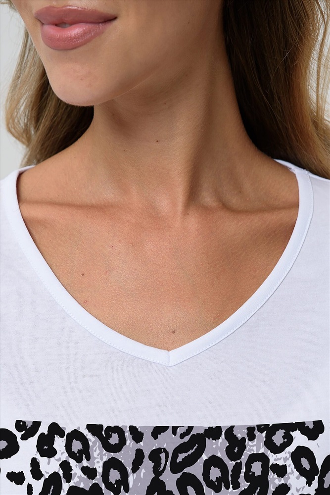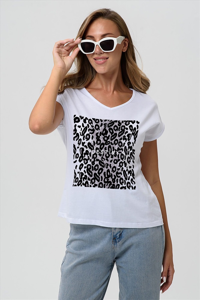 ID товара: 1032679 Состав: Хлопок 100% Сезон: Весна/Лето Длина: Средняя Фасон: Полуприлегающий Рукав: короткие Вырез горловины: V-образный Рисунок: леопардовый Декоративные элементы: Принт Основная ткань: Хлопок Стиль: повседневный Вид ткани: Кулирка Страна бренда: Россия Страна производства: Россия Футболка полуприлегающего силуэта, средней длины, с V-образной горловиной. Рукав цельнокроеный, короткий. Горловина и пройма обработаны бейкой из основного полотна. Комментарии к товару