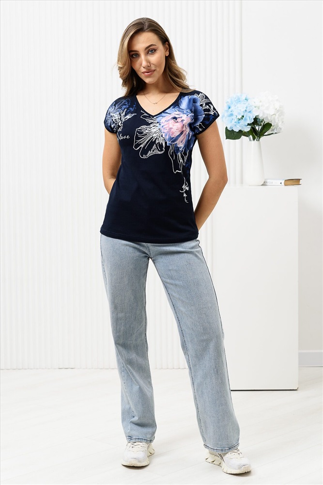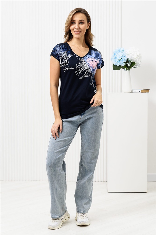 ID товара: 950390 Состав: Хлопок 100% Сезон: Весна/Лето Длина: Средняя Фасон: Полуприталенный Рукав: короткие Вырез горловины: V-образный Рисунок: цветочный Основная ткань: Хлопок Стиль: Повседневный Вид ткани: Кулирка Страна бренда: Россия Страна производства: Россия Футболка полуприлегающего силуэта, средней длины, с V-образной горловиной. Рукав цельнокроеный, короткий. Горловина и пройма обработаны бейкой из основного полотна. Комментарии к товару