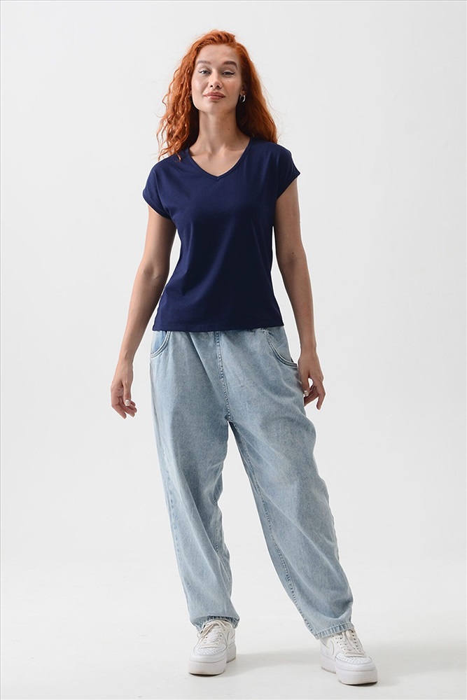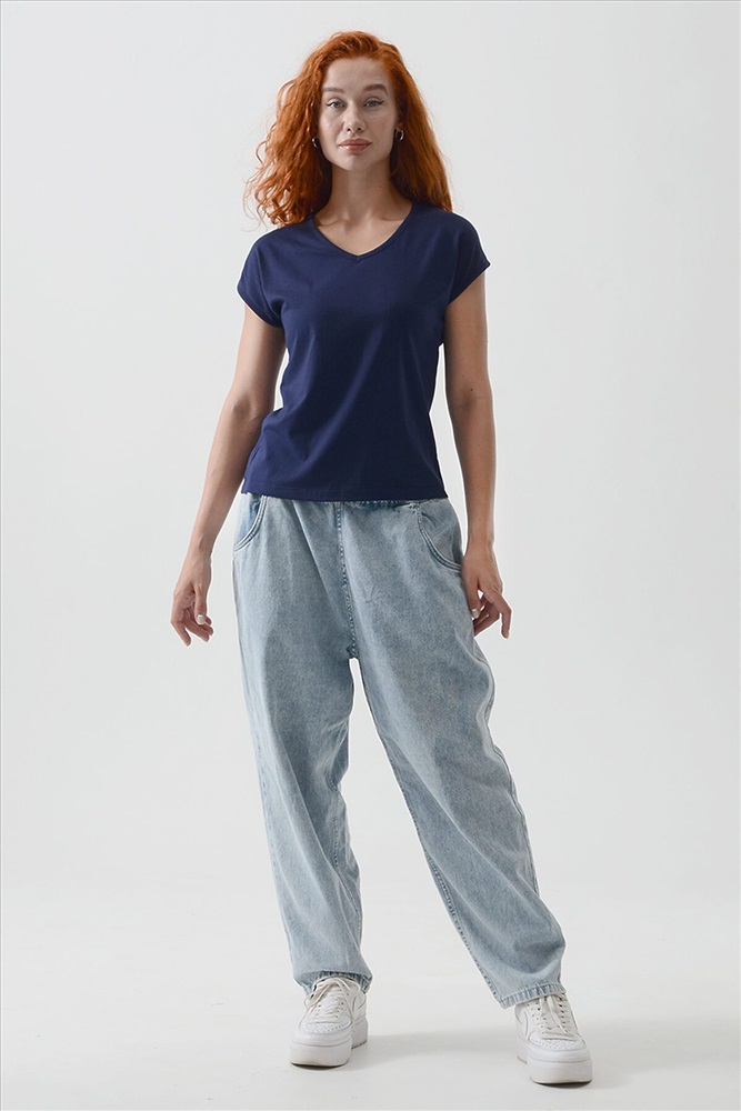 ID товара: 1029462 Состав: 100% Хлопок Сезон: Весна/Лето Длина: Средняя Фасон: Полуприлегающий Рукав: короткие Вырез горловины: V-образный Основная ткань: Хлопок Стиль: Базовый Вид ткани: Кулирка Страна бренда: Россия Футболка полуприлегающего силуэта, средней длины, с V-образной горловиной. Рукав цельнокроеный, короткий. Горловина и пройма обработаны бейкой из основного полотна. Комментарии к товару