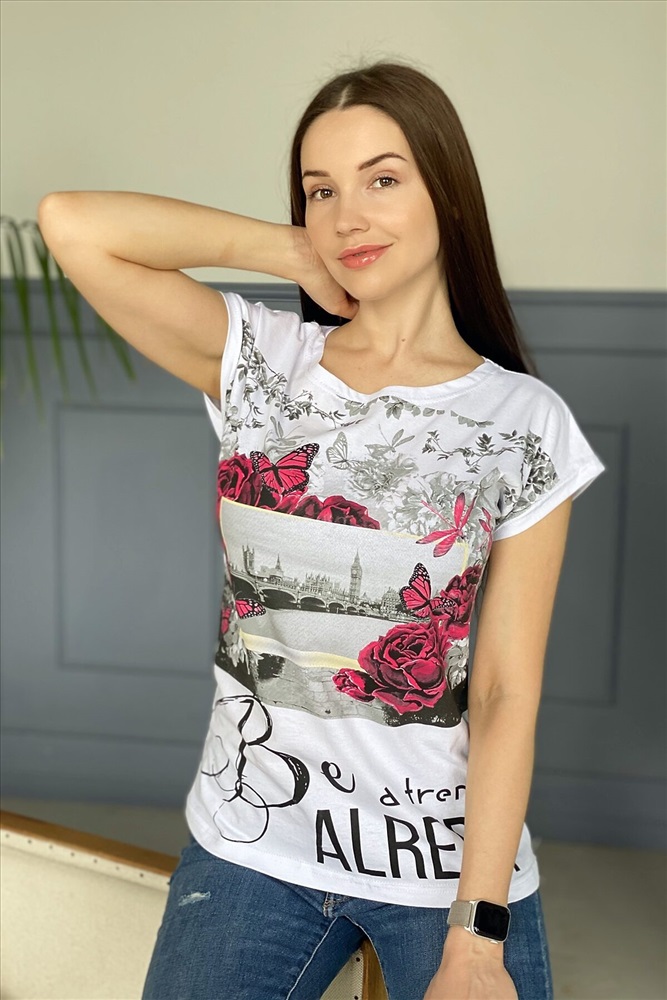 ID товара: 883271 Состав: Хлопок 100% Сезон: Весна/Лето Длина: Средняя Фасон: Прямой Рукав: Короткий Вырез горловины: Округлый Рисунок: пикчерс Основная ткань: Кулирка Стиль: Повседневный Страна бренда: Россия Страна производства: Россия Футболка полуприлегающего силуэта, средней длины, с округлой горловиной. Рукав цельнокроеный, короткий. Комментарии к товару