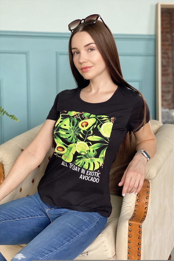 ID товара: 279529 Состав: 100% Хлопок. Сезон: Весна/Лето Длина: Средняя Фасон: Прямой Рукав: Короткий Вырез горловины: Круглый Рисунок: Фрукты Основная ткань: Хлопок | Кулирка, Кулирка — это самое тонкое и гладкое трикотажное полотно, изготовленное из чистого хлопка. Полотно имеет характерную структуру- с лицевой стороны плоские «косички», с изнаночной – «кирпичная кладка». Особенности- гигроскопична, воздухопроницаема, при стирке, сушке и глажке не садится, хорошо держит форму, не образует складки. Стиль: Повседневный Страна бренда: Россия Страна производства: Россия Футболка полуприлегающего силуэта, с округлой горловиной, длиной до середины бедра. Рукав втачной короткий. В верхней части спинки обработан декоративный вырез. Горловина и вырез на спинке обработаны бейкой из основного полотна. Комментарии к товару