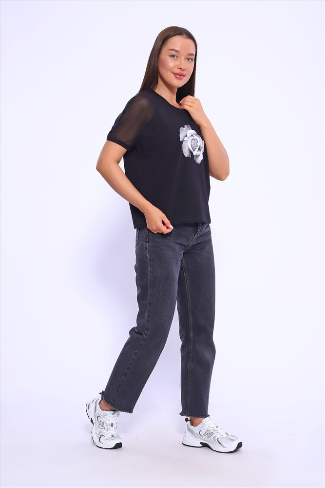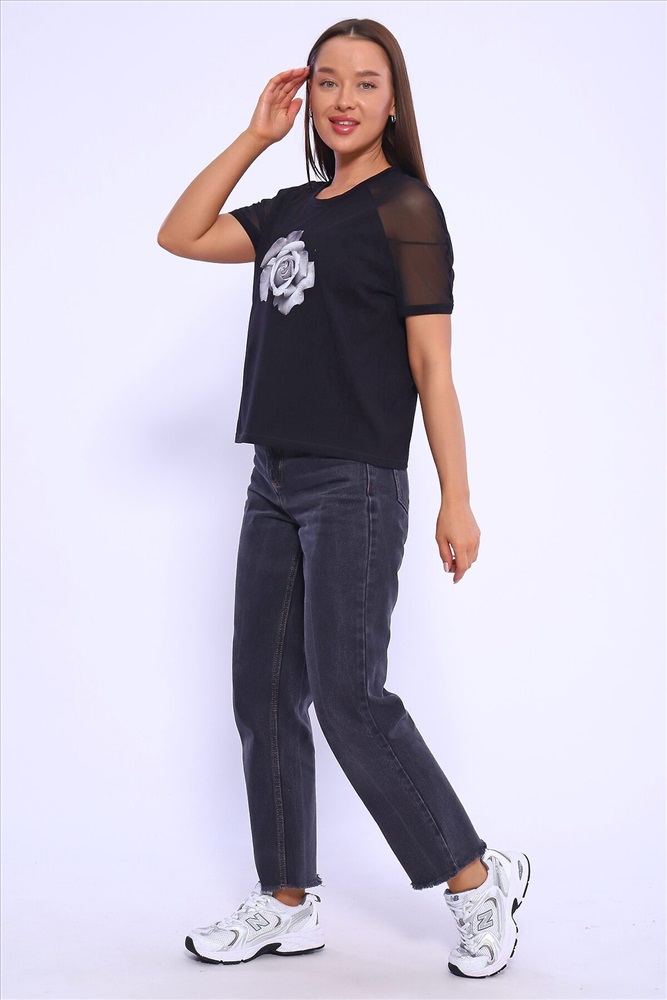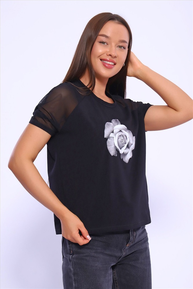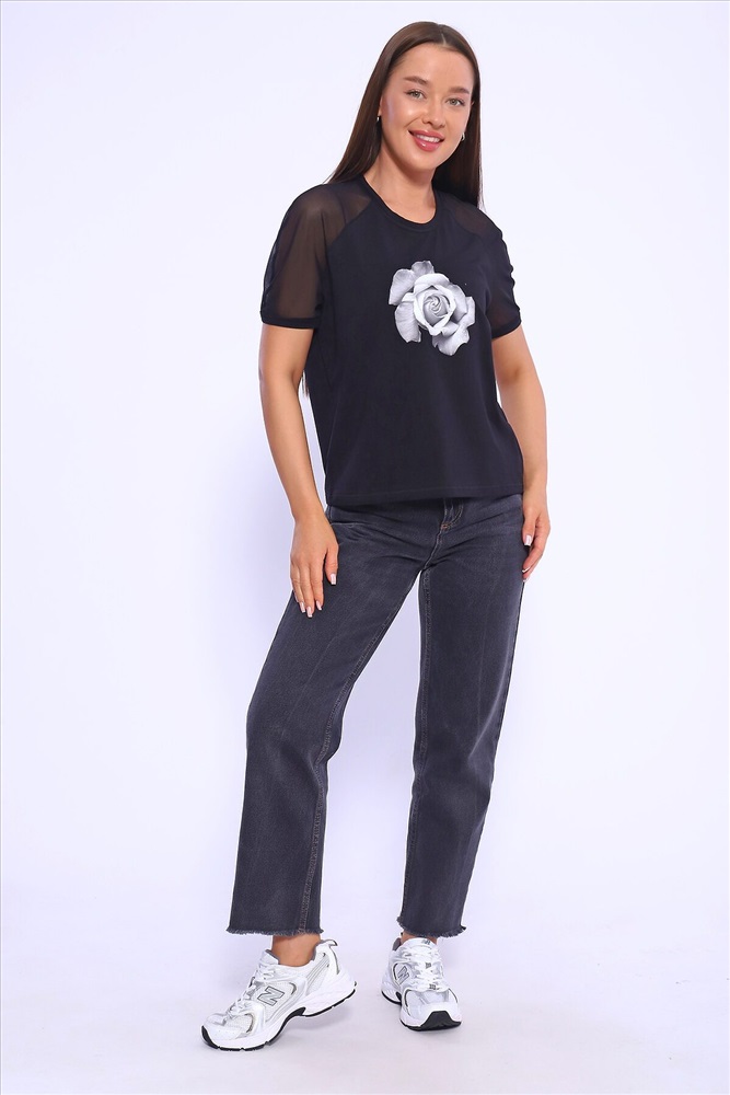 ID товара: 1003487 Состав: 92% Хлопок; 8% Лайкра Сезон: Весна/Лето Фасон: Прямой Рукав: Короткий Вырез горловины: Круглый Рисунок: растительный, цветочный Вид ткани: Кулирка с лайкрой Страна бренда: Россия Страна производства: Россия Футболка женская хлопковая с добавлением лайкры, свободного кроя, рукава выполнены из сетки турецкого качества, что придают шарма и изысканности данной модели. Футболку можно сочетать с любой вещью в вашем гардеробе. Так же будет смотреться отлично и под вечерний образ сочетая с брюками или юбкой. Комментарии к товару