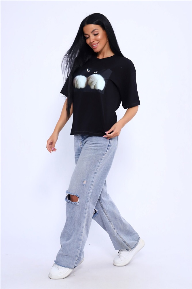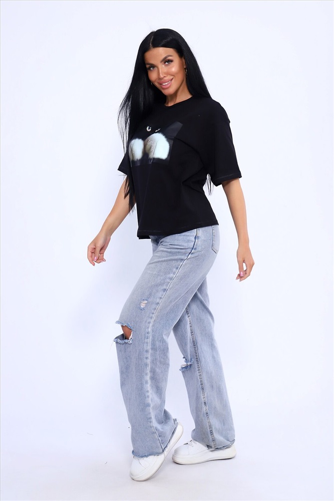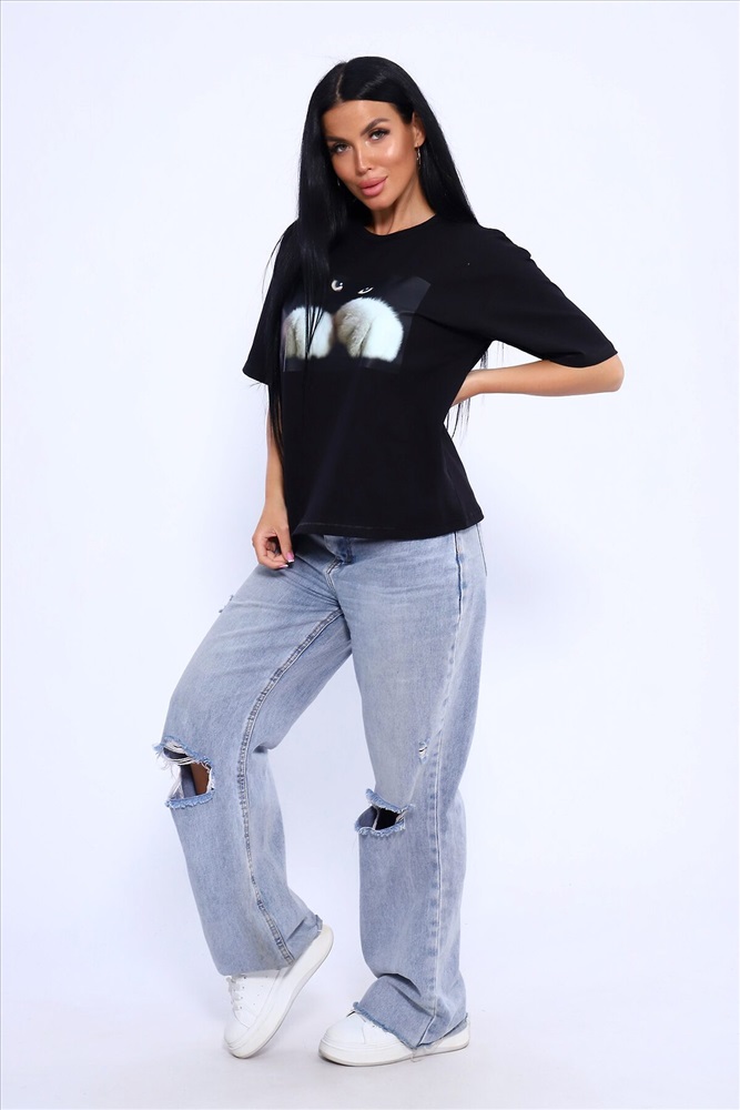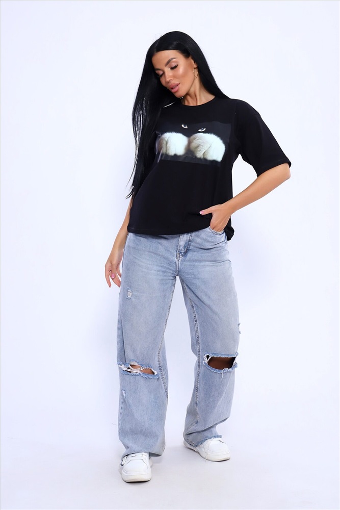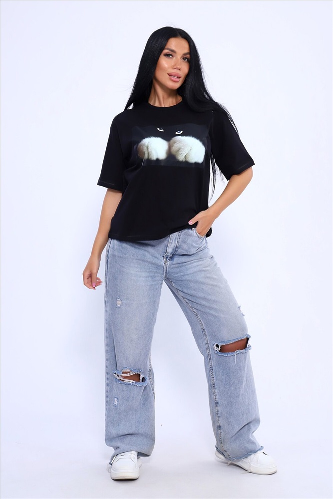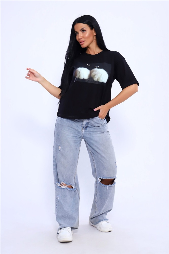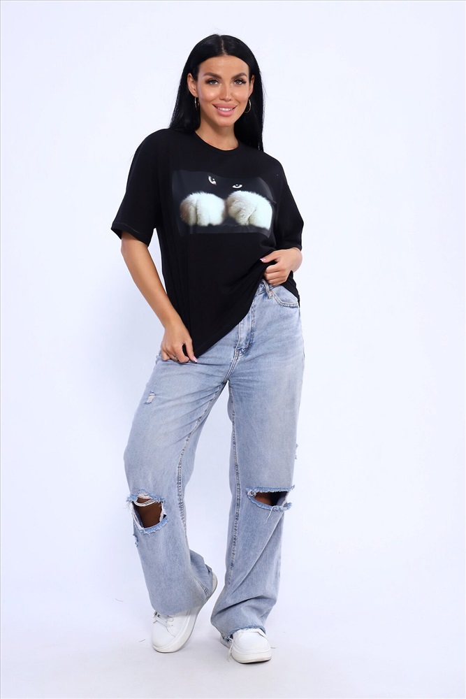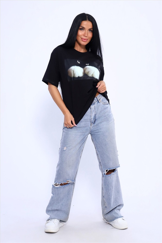 ID товара: 1018337 Состав: 92% Хлопок; 8% Лайкра Сезон: Весна/Лето Фасон: Оверсайз Рукав: Короткий Вырез горловины: Круглый Рисунок: Фантазийный Вид ткани: Кулирка с лайкрой Страна бренда: Россия Страна производства: Россия Офигенная классная и стильная футболка свободного кроя оверсайз. Необычный принт смотрится красиво и эффектно. Такой вид футболки не стесняет движения в ней ты будешь чувствовать себя комфортно. Ткань приятная и нежная. Производство Россия. Комментарии к товару