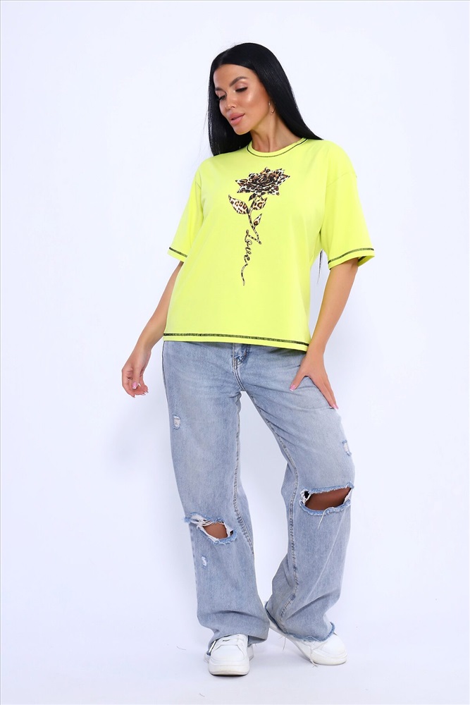 ID товара: 1018336 Состав: 92% Хлопок; 8% Лайкра Сезон: Весна/Лето Фасон: Оверсайз Рукав: Короткий Вырез горловины: Круглый Рисунок: растительный, цветочный Вид ткани: Кулирка с лайкрой пенье Страна бренда: Россия Страна производства: Россия Яркая стильная футболка свободного кроя оверсайз. Материал ткани очень нежный и приятный к телу. Летом в такой футболке ходить одно удовольствие. Ее можно сочетать с любым видом одежды. Так же будет отличной альтернативой для сна или домашней одежды. Производство Россия. Комментарии к товару