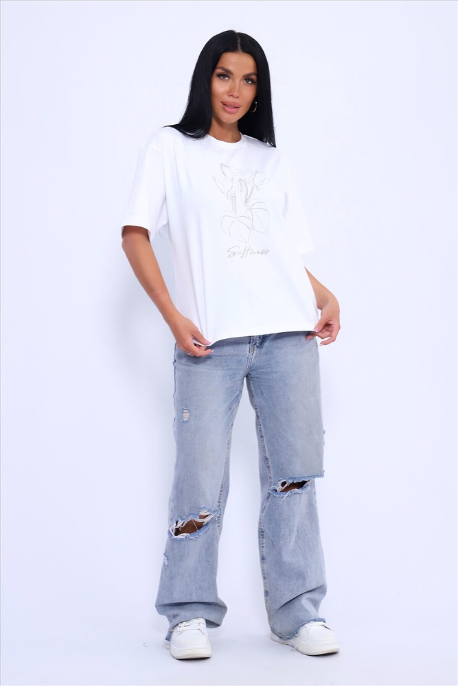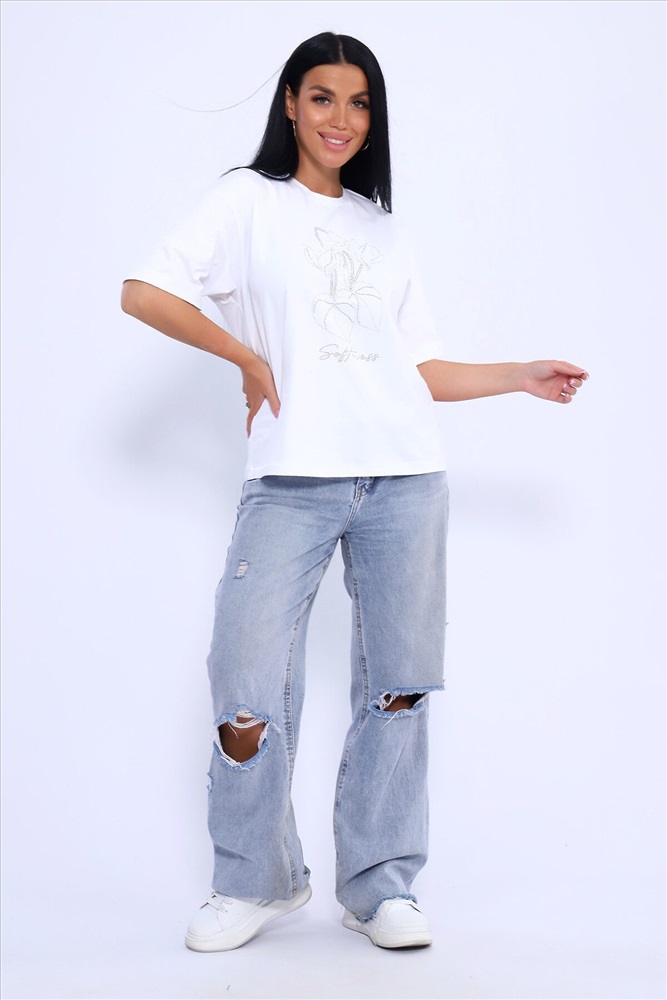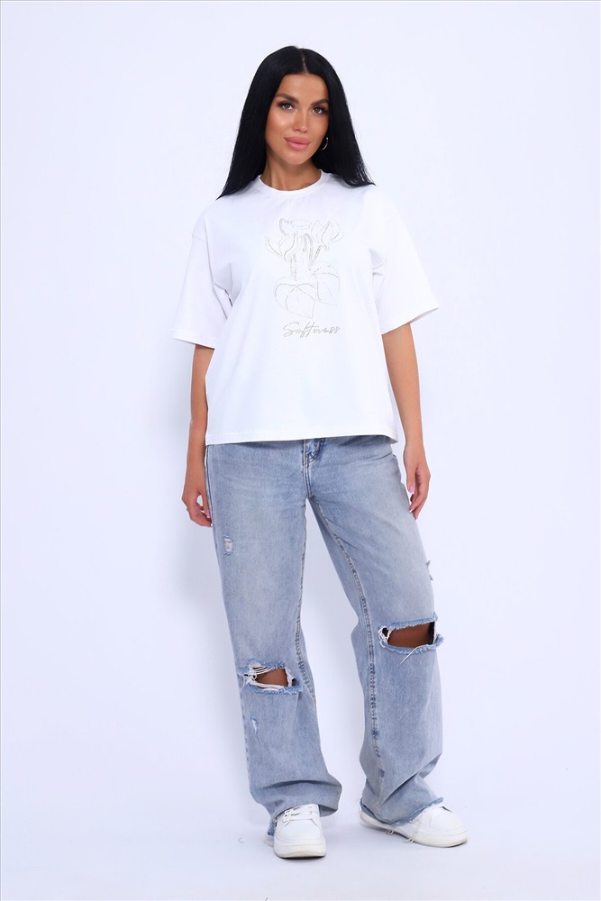 ID товара: 1018596 Состав: 92% Хлопок, 8% Лайкра Сезон: Весна/Лето Фасон: Свободный крой Рукав: Короткие Вырез горловины: Круглый Рисунок: Фантазийный Вид ткани: Кулирка с лайкрой Страна бренда: Россия Страна производства: Россия Классная яркая универсальная футболка свободного кроя оверсайз. Ткань приятная плотная с лайкрой и мягкая. Принт стразы, в такой футболке вы точно останетесь не замеченными. В футболке уютно и комфортно. Производство Россия. Комментарии к товару