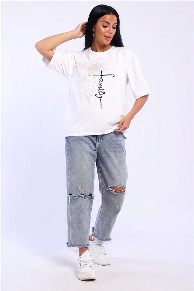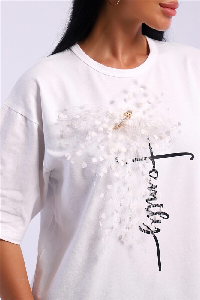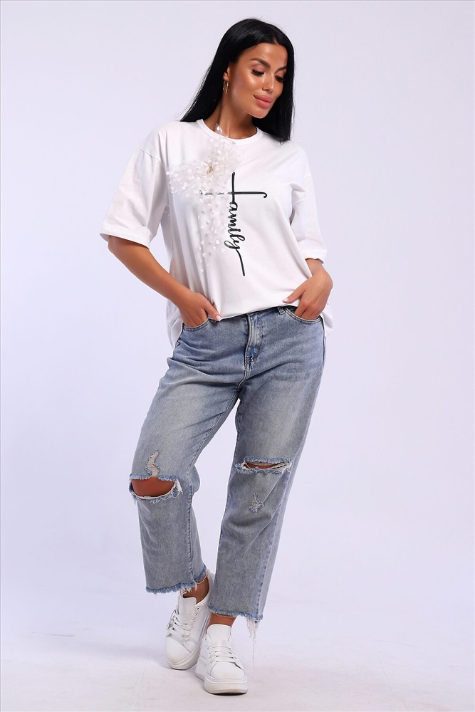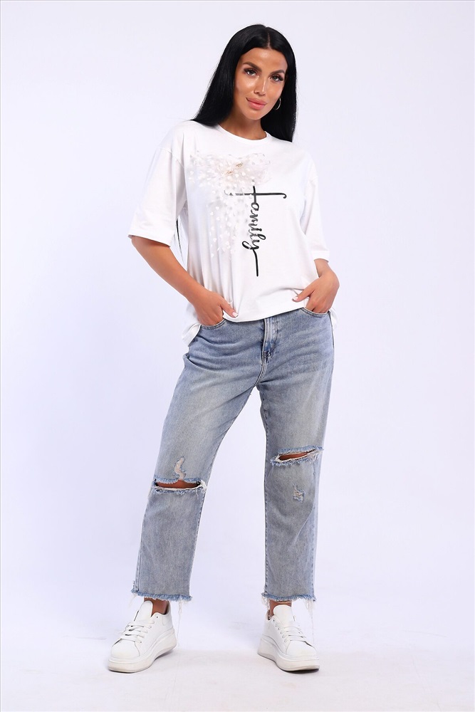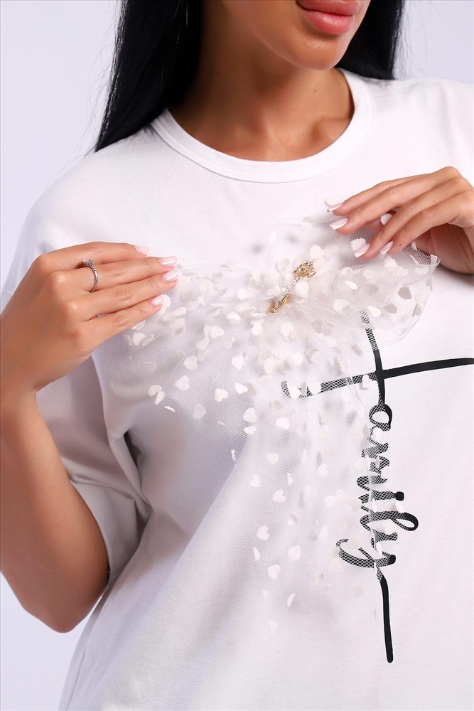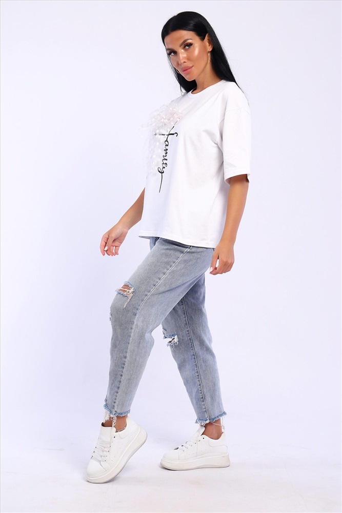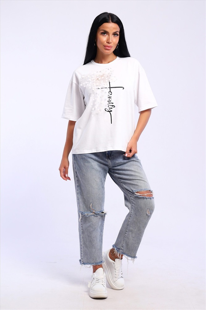 ID товара: 1023028 Состав: 92% Хлопок; 8% Лайкра Сезон: Весна/Лето Длина: Средняя Фасон: Свободный Рукав: короткие Вырез горловины: Округлый Рисунок: Надпись Декоративные элементы: Принт Основная ткань: Хлопок Стиль: повседневный Вид ткани: Кулирка с лайкрой Страна бренда: Россия Страна производства: Россия Футболка оверсайс с термопечатью. В подарок идет украшение бант с красивой булавкой который можно использовать как отдельный элемент сама булавочка может быть разного дизайна. Комментарии к товару