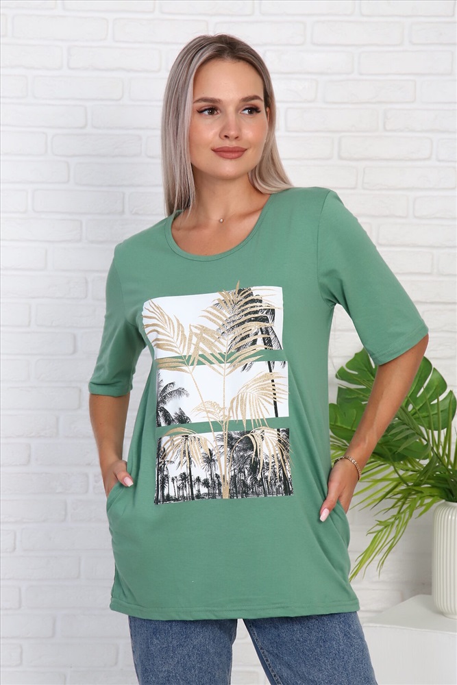 ID товара: 986272 Состав: Хлопок 100% Сезон: Весна/Лето Длина: Удлиненная Фасон: Свободный Рукав: короткие Вырез горловины: Округлый Рисунок: растительный Декоративные элементы: Принт Основная ткань: Хлопок Стиль: повседневный Вид ткани: Кулирка Страна бренда: Россия Страна производства: Россия Футболка женская однотонная с ярким, легким и красивым принтом , округлым вырезом горловины - модный тренд уже не первый год. Она универсальна и отлично подходит для беременных и кормящих женщин за счет своего свободного покроя . Для занятий спортом , отдыха , фитнеса и йоги , бега , поездок на море и на пляж . Вы можете создать свой уникальный образ в офис , надев футболку под пиджак с юбкой , на выпуск или заправив в джинсы , шорты , велосипедки , брюки . Стильная современная футболка оптимальной длины прекрасно подойдет в качестве школьной одежды и на физкультуру . Женская трикотажная майка классического фасона , прямого силуэта для повседневной носки подойдет для девочки подростка девушек и женщин любой комплекции и фигуры , так как отшита в больших размерах . Топ из мягкого хлопкового трикотажа не сковывает движений , что удобно для дома , сна позволяет коже дышать , приятен телу. Комментарии к товару