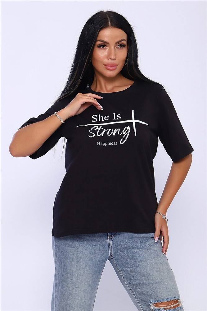 ID товара: 926819 Состав: 100% Хлопок Сезон: Весна/Лето Длина: Средняя Фасон: Свободный крой Рукав: короткие Вырез горловины: Округлый Рисунок: Надпись Основная ткань: Хлопок Стиль: Повседневный Вид ткани: Кулирка Страна бренда: Россия Страна производства: Россия Футболка с милым принтом будет востребована и для прогулок на каждый день, и как домашний вариант! Прямой силуэт, выверенная длина рукава до локтя, обработка деталей вкруговую с закрепкой для прочности. Горловина выполнена из основной ткани, Большие размеры! Комментарии к товару