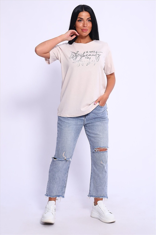 Страна производства: Россия Футболка с оригинальным принтом изготовлена из мягкого 100% хлопка. Горловина обработана обтачкой с последующей отстрочкой. Рукава и низ в подгибку.