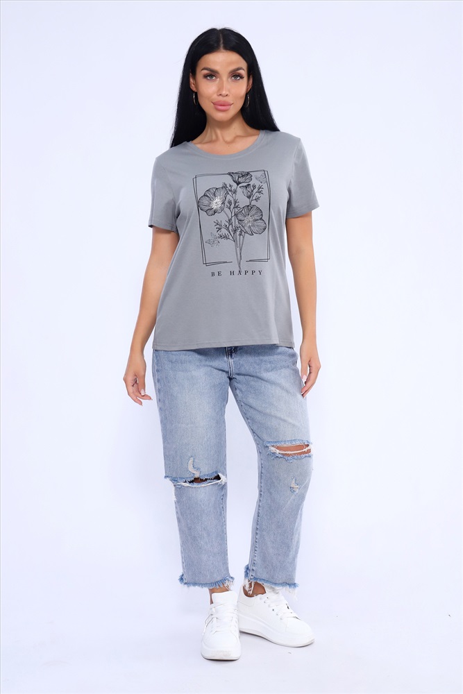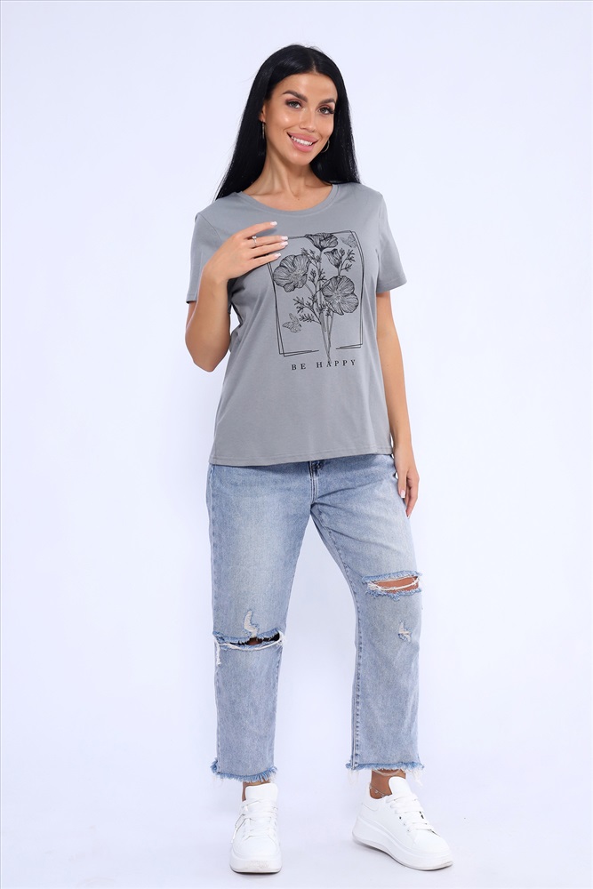 Стиль: повседневный Прекрасный вариант для летнего отдыха и комфортного лука на каждый день! Спокойные, летние цвета. Футболка изготовлена из мягкого 100% хлопка. Фасон приталенный. Горловина обработана обтачкой с последующей отстрочкой. Рукава и низ изделия в подгибку. Маломерит на размер!