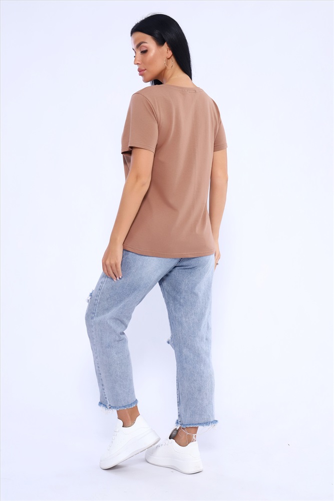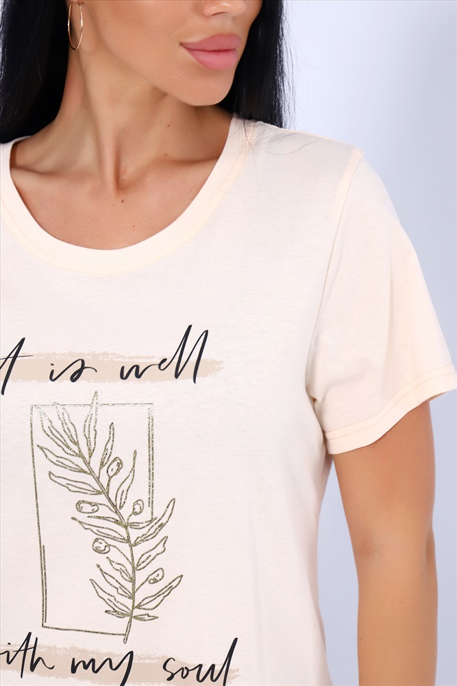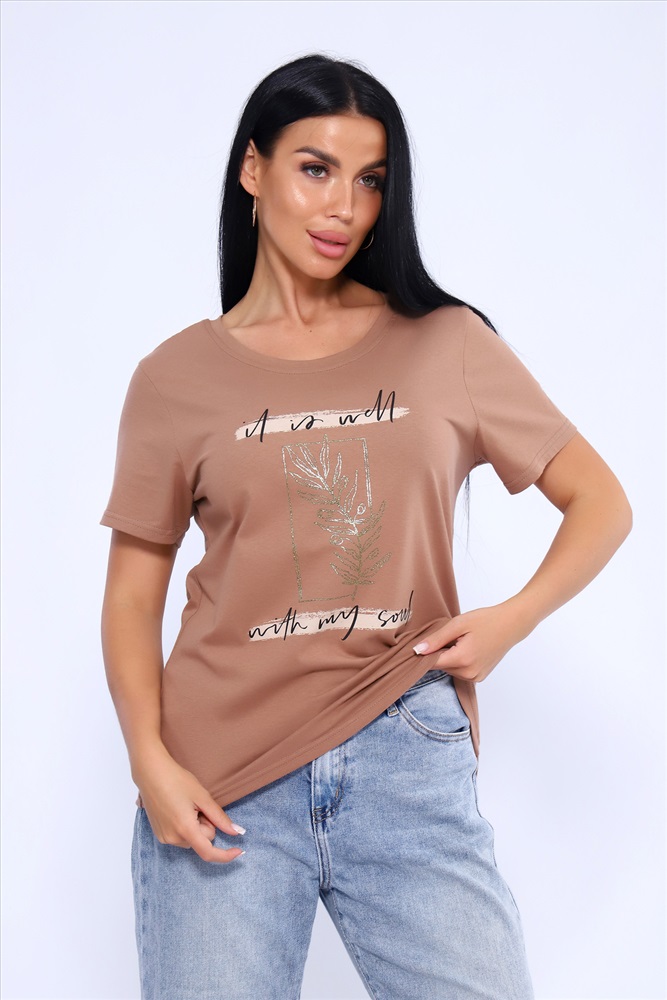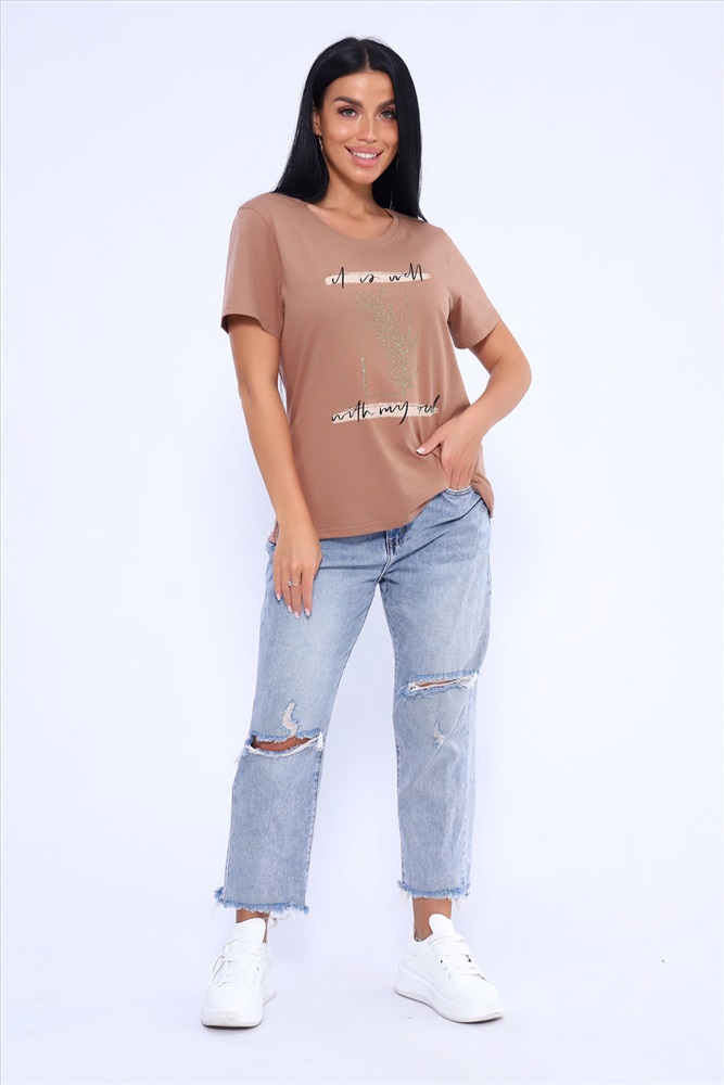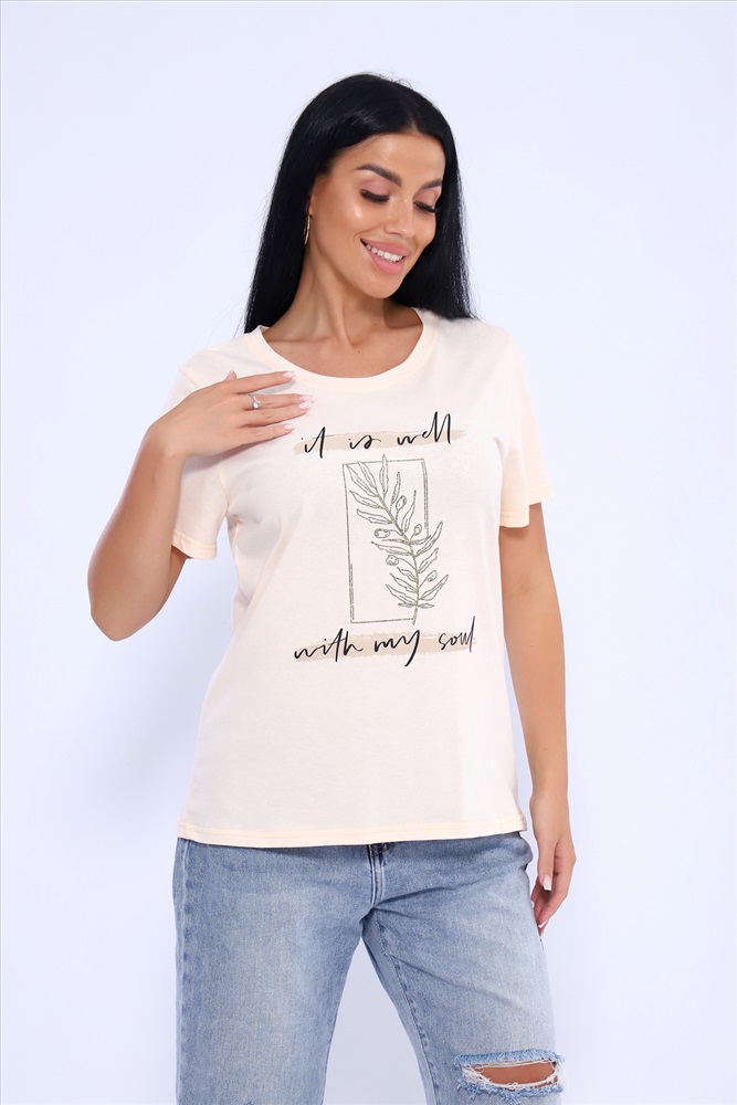 Стиль: повседневный Прекрасный вариант для летнего отдыха и комфортного лука на каждый день! Нежные, пастельные расцветки и принт с французским блеском придают стиль и шарм. Футболка изготовлена из мягкого 100% хлопка. Фасон приталенный. Горловина обработана обтачкой с последующей отстрочкой. Рукава и низ изделия в подгибку. Маломерит на размер!