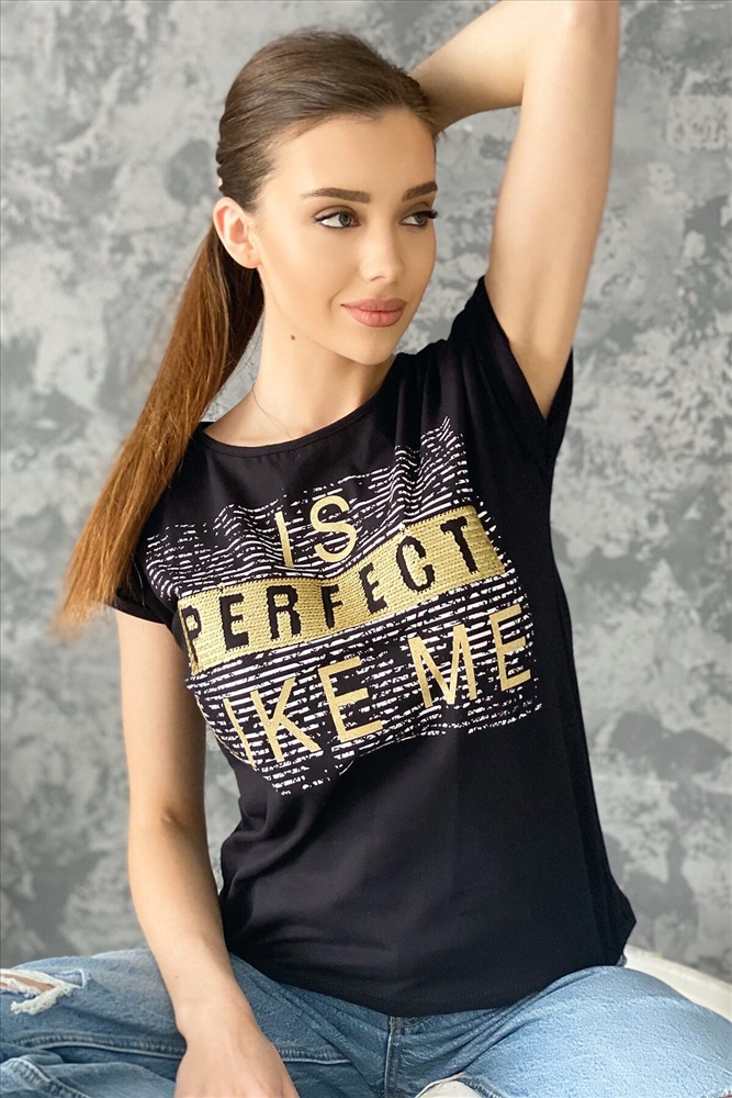 ID товара: 305303 Состав: Хлопок 95%, Лайкра 5% Сезон: Весна/Лето Длина: Средняя Фасон: Прямой Рукав: Короткий Вырез горловины: Круглый Основная ткань: Хлопок | Кулирка с лайкрой пенье, Кулирка с лайкрой пенье — стрейч-кулирка, выполненная из самых лучших и длинных нитей. В остальном идентичная кулирке с лайкрой. Особенности- эластичность, гипоаллергенность, гигроскопичность, возможна усадка при стирке. Стиль: Повседневный Страна бренда: Россия Страна производства: Россия Футболка полуприлегающего силуэта, средней длины, с округлой горловиной. Рукав цельнокроеный, короткий, на манжете с отворотом. Полочка украшена эффектной печатью с пайетками Комментарии к товару