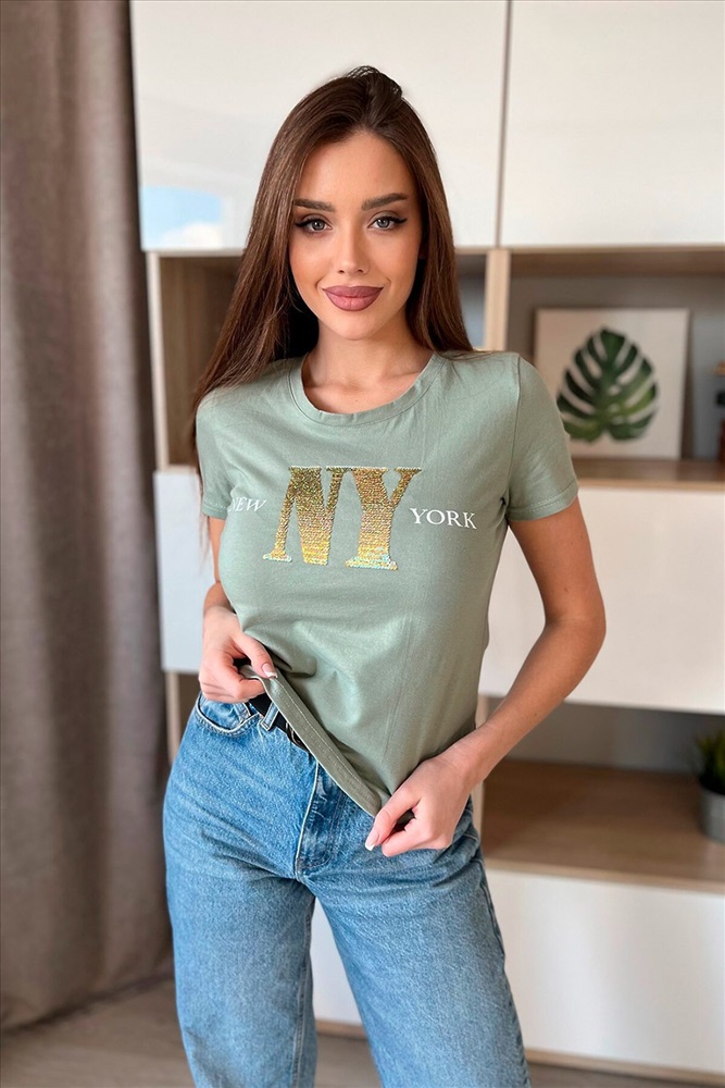 ID товара: 742663 Состав: Хлопок 95%, Лайкра 5% Сезон: Весна/Лето Длина: Средняя Фасон: Прямой Рукав: Короткие Вырез горловины: Округлый Рисунок: Надпись Декоративные элементы: Пайетки Основная ткань: Хлопок | Кулирка с лайкрой Стиль: Повседневный Страна бренда: Россия Страна производства: Россия Футболка прямого силуэта, с фигурной линией низа, с округлой горловиной. Рукав втачной, короткий. Горловина обработана обтачкой из основного полотна. На полочке эффектно сочетаются аппликация из пайеток в виде букв NY и печать New York Комментарии к товару