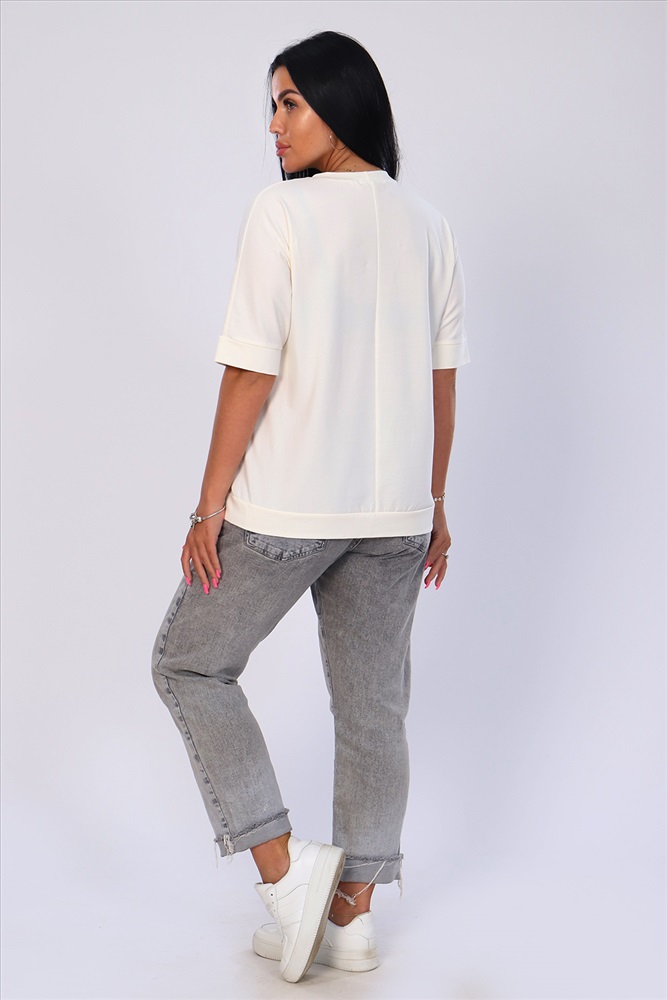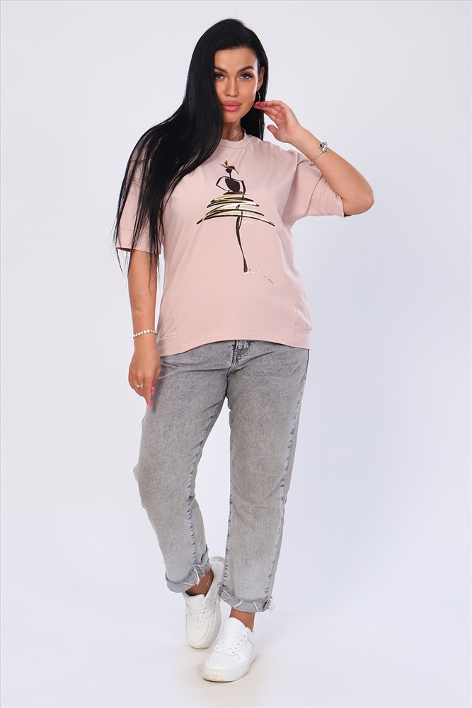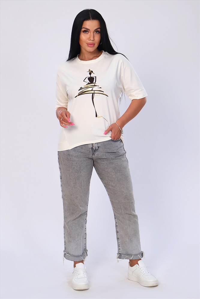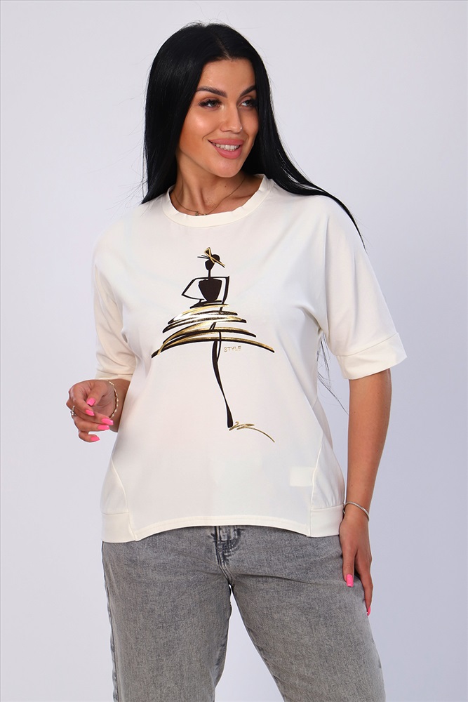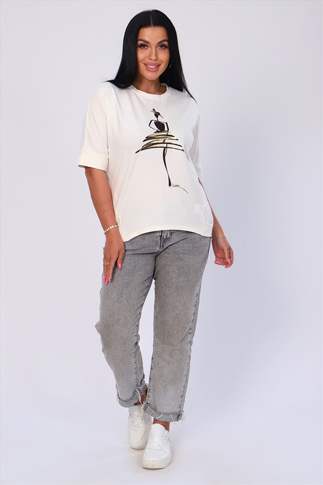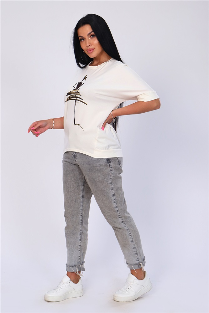 Стиль: молодежный | повседневный Футболка женская из кулирки с лайкрой высокого качества пенье. Модель свободного кроя, горловина круглая обработана обтачкой, цельнокроеный рукав длиной до локтя, низ спинки и рукав обработаны широким манжетом. Стильный принт, комфортная футболка придаст вашему образу индивидуальность и неповторимость, скроет недостатки и подчеркнёт достоинства фигуры. Длина рукава в таблице измерений указана от начала плечевого шва.