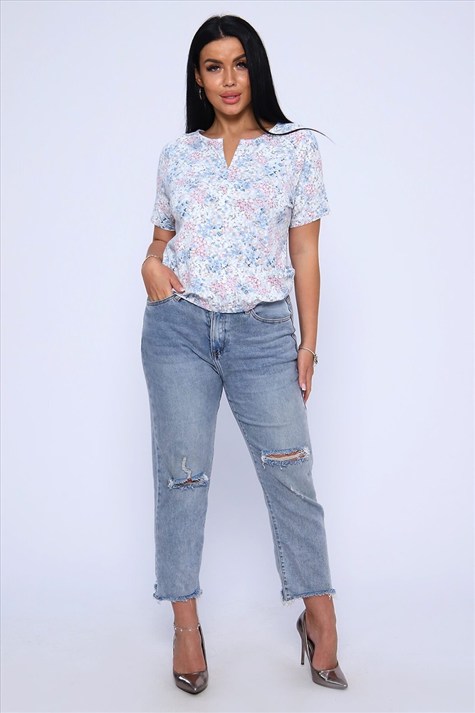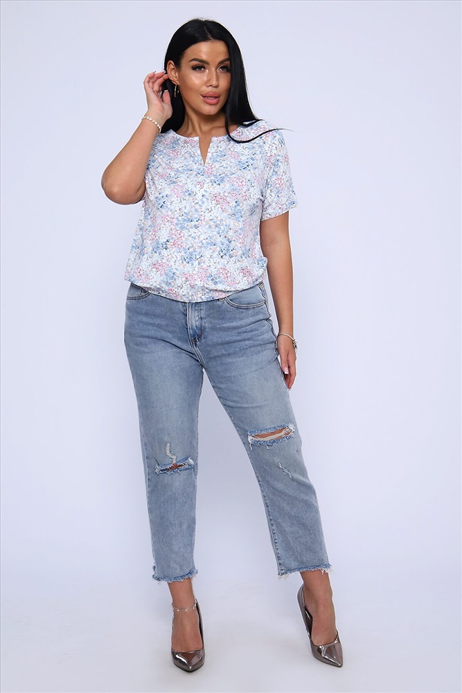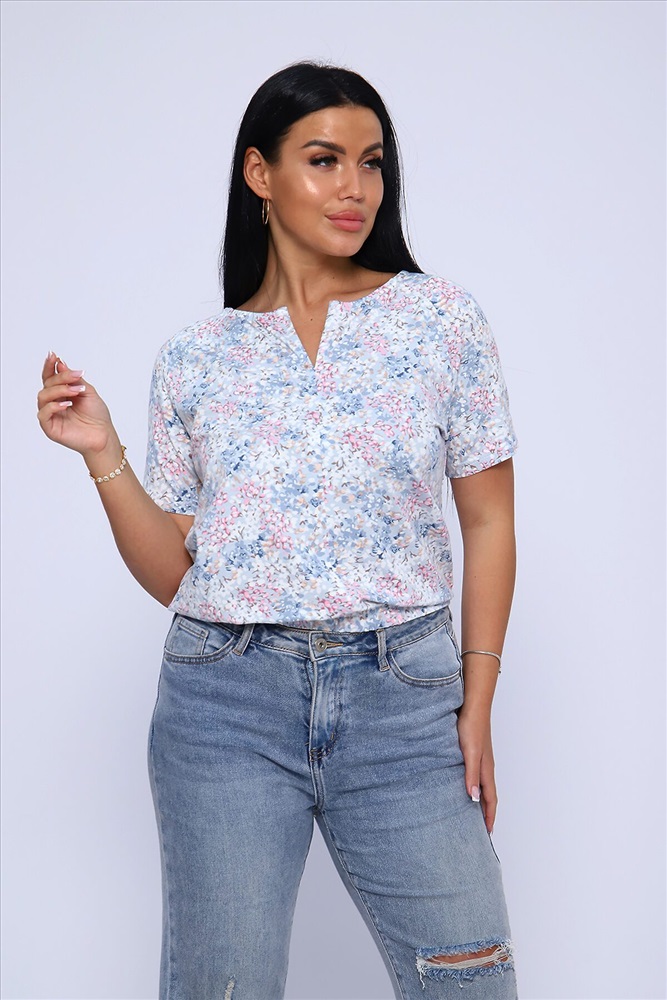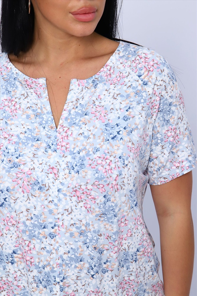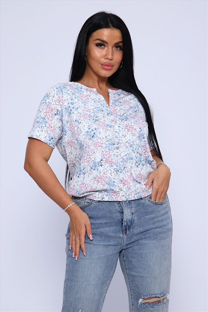 ID товара: 906775 Состав: Вискоза 92%, Лайкра 8% Сезон: Весна/Лето Длина: Средняя Фасон: Свободный крой Рукав: короткие Вырез горловины: V-образный Рисунок: цветочный Основная ткань: Вискоза Стиль: Повседневный Вид ткани: Вискоза Страна бренда: Россия Страна производства: Россия Футболка женская из набивной, приятной к телу, струящейся вискозы. Туника свободного силуэта, круглая горловина с фигурным вырезом на груди в виде галочки, короткий рукав - реглан. Низ футболки собран на широкую резинку для более комфортного прилегания. Это позволит импровизировать ваш образ: эффектно подчеркнуть талию или изящно разместить на линии бедер. Лёгкая, летняя кофта отличный офисный вариант, хорошо будет смотреться с брюками, джинсами, а также с юбкой, создавая стильный, женственный, утонченный образ.Длина рукава в таблице измерений указана от начала горловины. Комментарии к товару