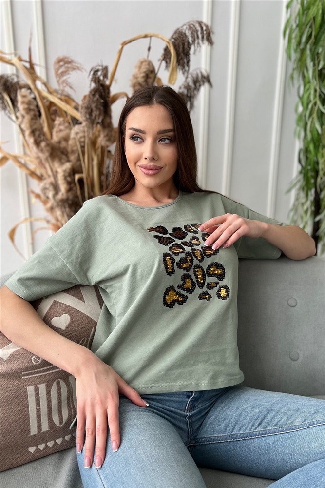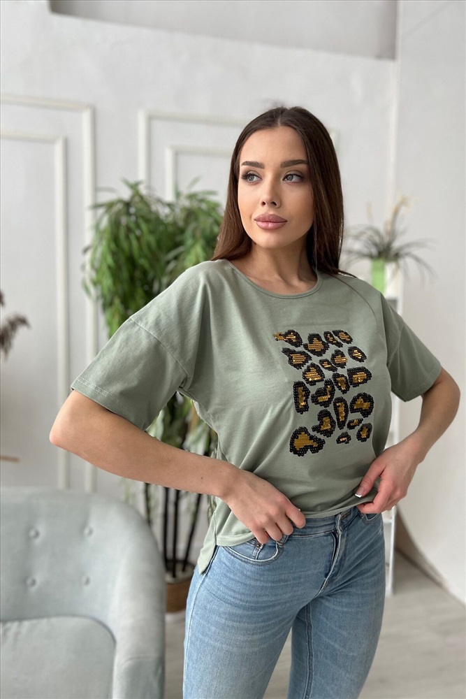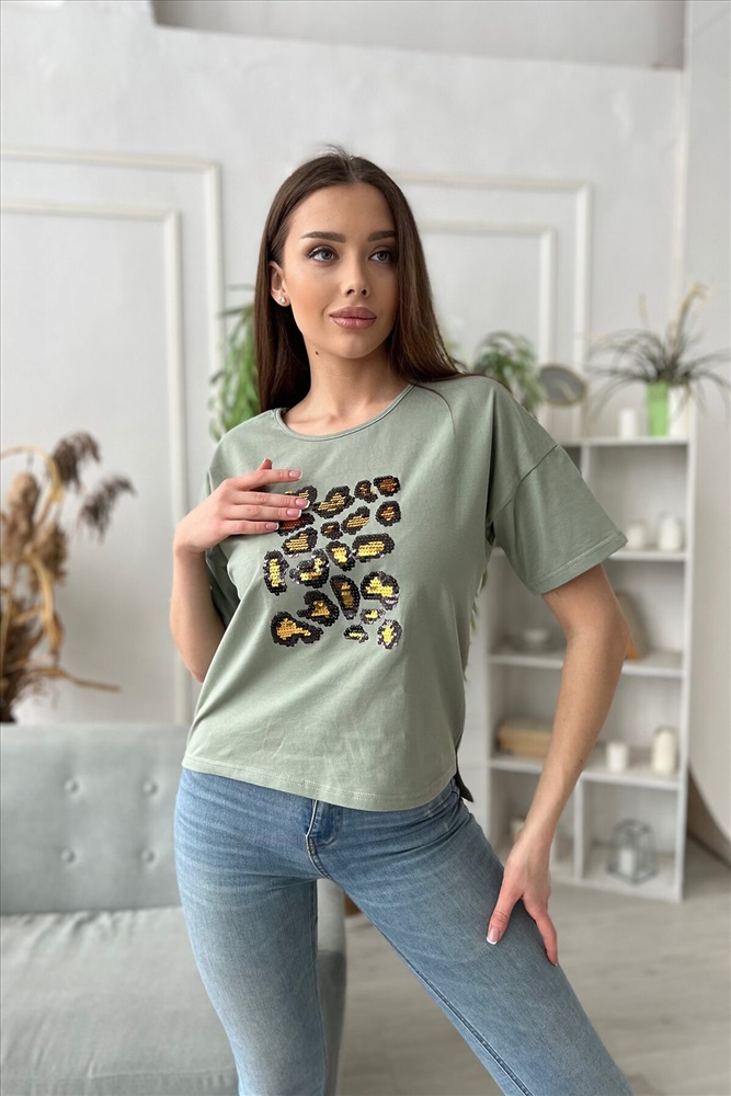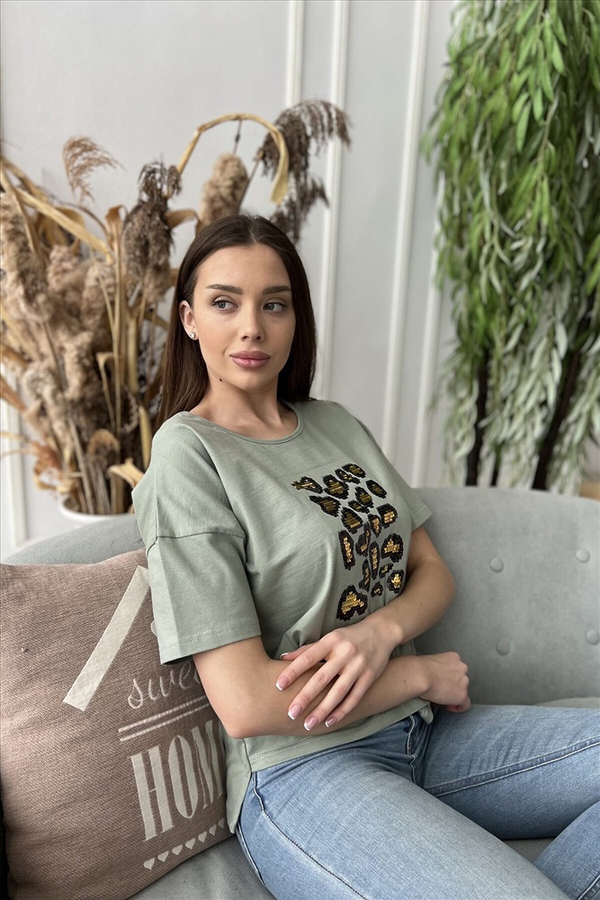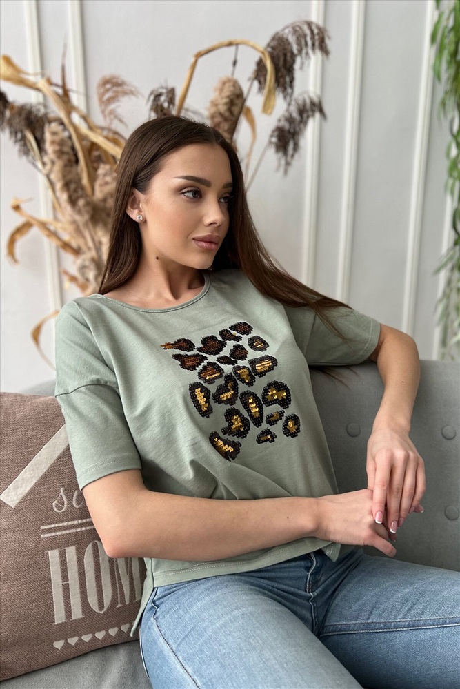 ID товара: 764954 Состав: Хлопок 95%, Лайкра 5% Сезон: Весна/Лето Длина: Средняя Фасон: Прямой Рукав: Короткие Вырез горловины: Лодочка Рисунок: леопардовый Декоративные элементы: Пайетки Основная ткань: Хлопок | Кулирка с лайкрой пенье Стиль: Повседневный Страна бренда: Россия Страна производства: Россия Футболка прямого силуэта, с округлой горловиной, с удлиненной спинкой. Рукав короткий. Горловина обработана бейкой из основного полотна. На полочке эффектная аппликация из пайеток Комментарии к товару