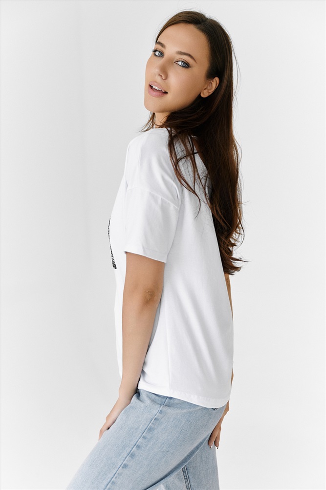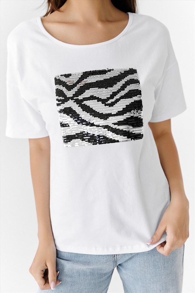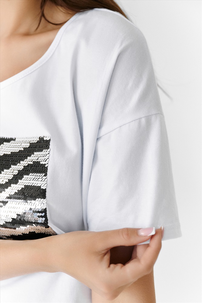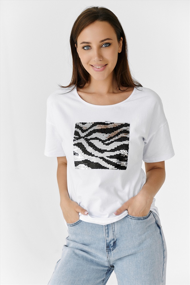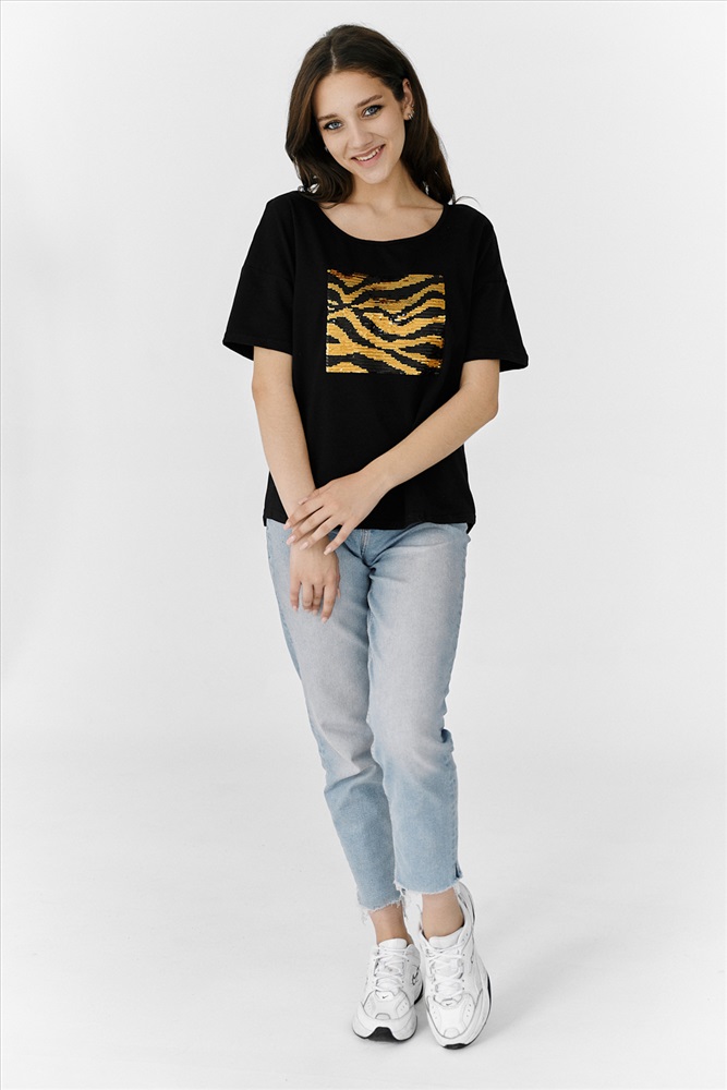 Состав: хлопок 95%, лайкра 5% Модель: Футболка 8217 Тип товара: футболка Материал: кулирка с лайкрой пенье | кулирка с лайкрой пенье Бренд: Натали Суслова Длина: средняя длина Отделка: с пайетками Рейтинг: Рейтинг 4 и выше Рисунок: анималистичный Рукав: короткий рукав Сезонность: лето | осень | весна | зима Силуэт: прямой Скидка: любая | от 10% и больше | от 30% и больше | от 50% и больше Стиль: молодежный | повседневный Футболка прямого силуэта, с округлой горловиной спереди и V-образной на спинке, с удлиненной спинкой. Рукав короткий. В верхней части спинки обработан фигурный вырез со шнуром. Горловина обработана бейкой из основного полотна. На полочке эффектная аппликация из пайеток Таблица размеров и веса