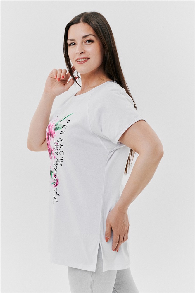 Состав: хлопок 100% Модель: Футболка 8249 Тип товара: футболка Материал: кулирка | кулирка Бренд: Натали Суслова Отделка: с печатью Рейтинг: Рейтинг 4 и выше Рисунок: цветы Рукав: короткий рукав Сезонность: лето | осень | весна | зима Силуэт: прямой | свободный Стиль: повседневный Футболка прямого силуэта, с округлой горловиной, с разрезами в нижней части боковых швов. Полочка с симметричными кокетками. Спинка с кокеткой, удлиненная. Горловина обработана обтачкой из основного полотна. Таблица размеров и веса