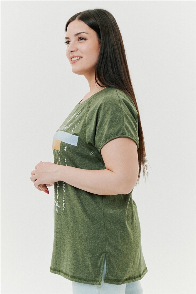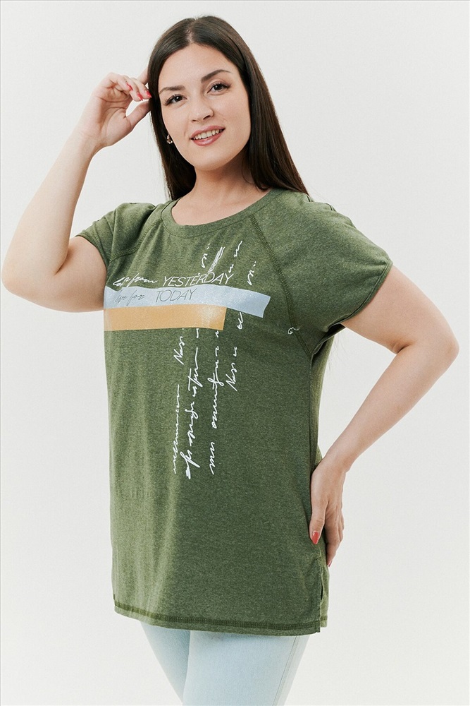 ID товара: 792169 Состав: Хлопок 70%, Полиэстер 30% Сезон: Весна/Лето Длина: Средняя Фасон: Прямой Рукав: Короткие Вырез горловины: Округлый Рисунок: Надпись Декоративные элементы: Печатный принт Основная ткань: Хлопок | Кулирка Стиль: Повседневный Страна бренда: Россия Страна производства: Россия Футболка прямого силуэта, с округлой горловиной, с разрезами в нижней части боковых швов. Полочка с симметричными кокетками. Спинка с кокеткой, удлиненная. Горловина обработана обтачкой из основного полотна. Комментарии к товару