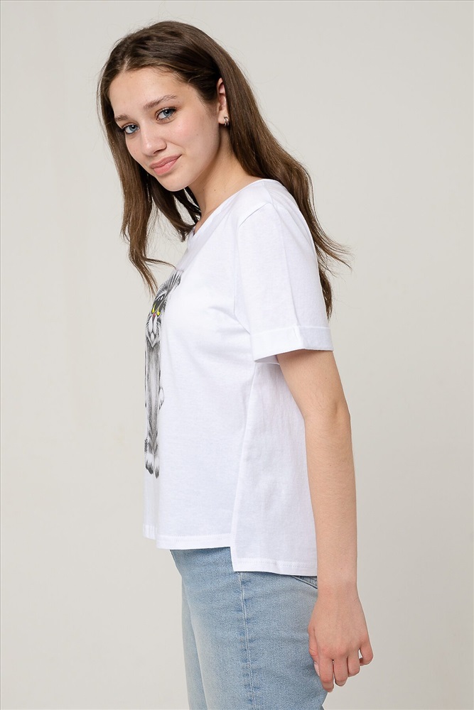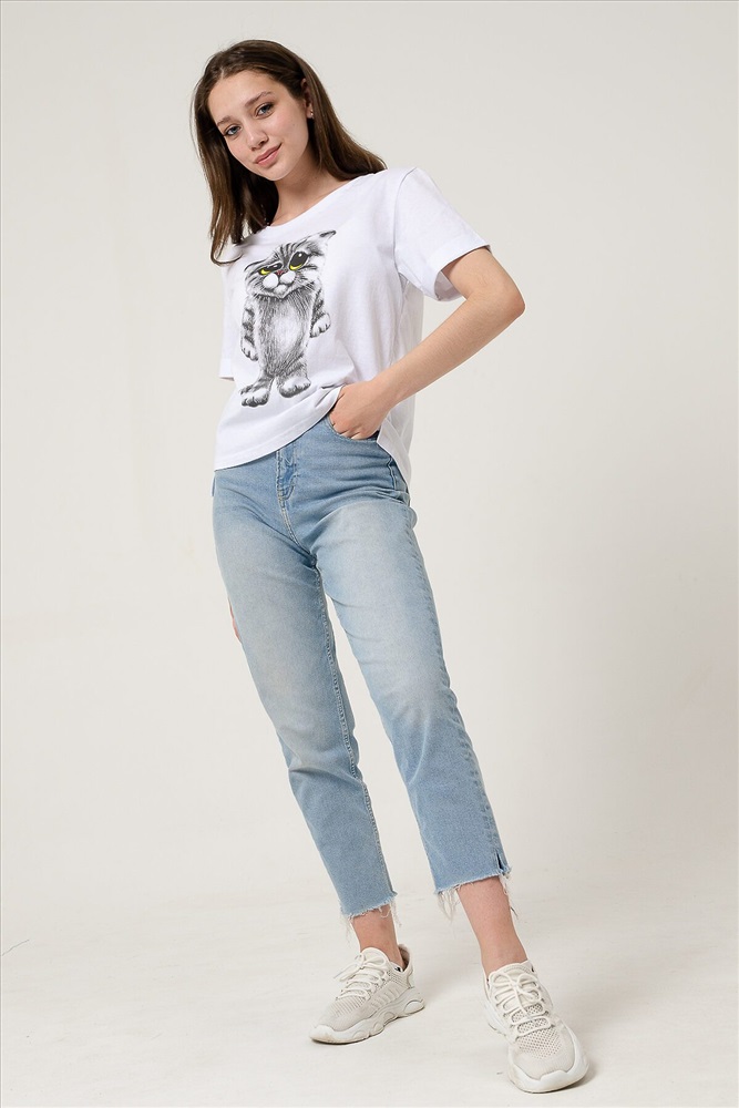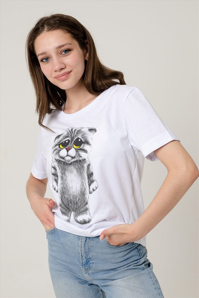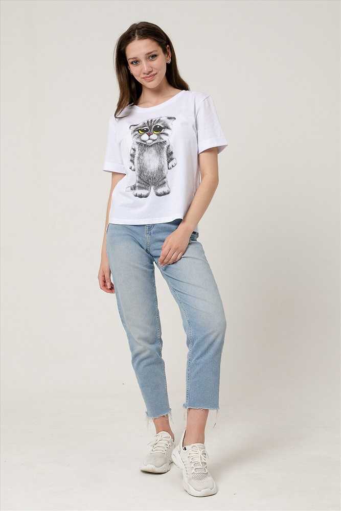ID товара: 792160 Состав: Хлопок 100% Сезон: Весна/Лето Длина: Средняя Фасон: Прямой Рукав: Короткие Вырез горловины: Округлый Рисунок: котики Декоративные элементы: Печатный принт Основная ткань: Хлопок | Кулирка Стиль: Повседневный Страна бренда: Россия Страна производства: Турция Футболка прямого силуэта, с округлой горловиной, с фигурной линией низа, длиной до середины бедра. Рукав втачной, короткий, с отворотом. Горловина обработана обтачкой из эластичного полотна. В продаже есть аналогичная детская футболка 5125 Комментарии к товару