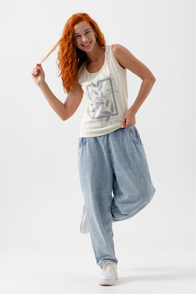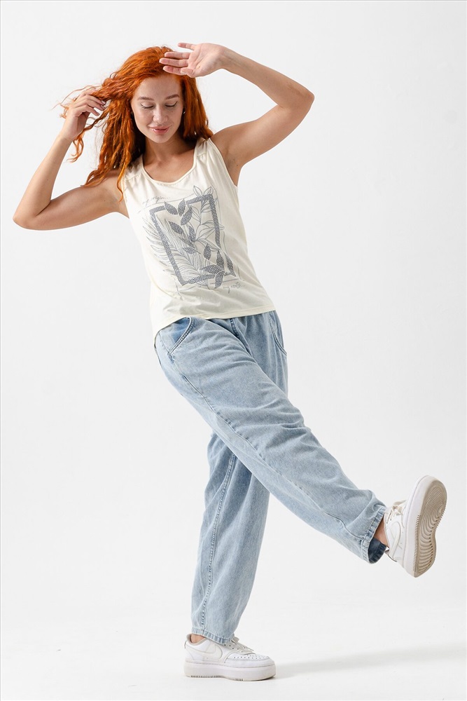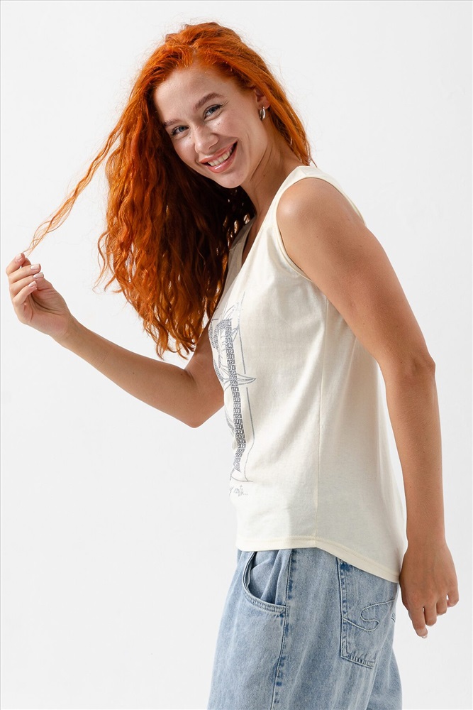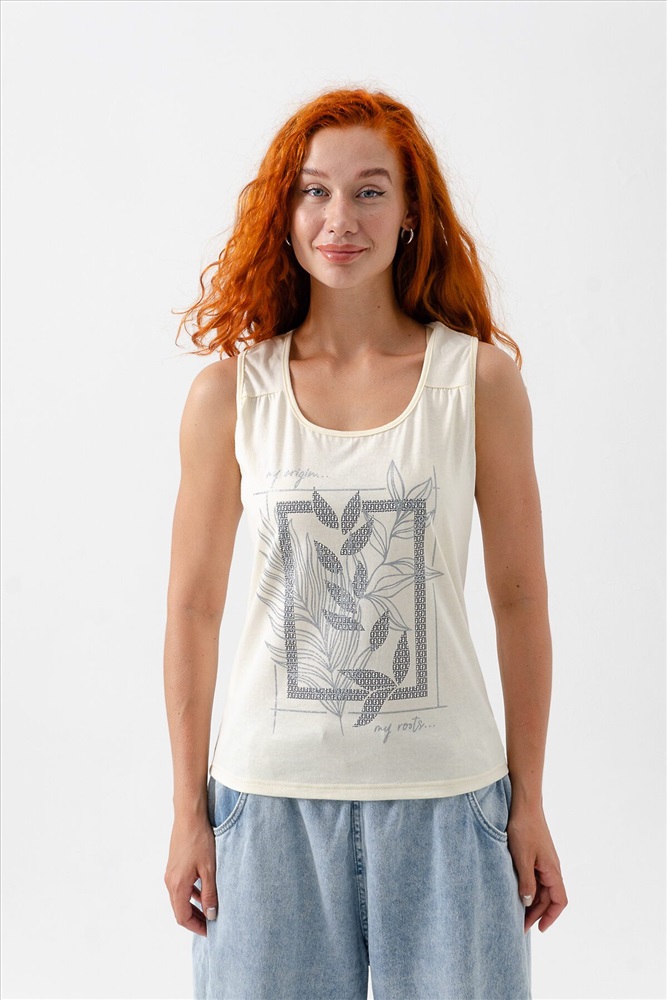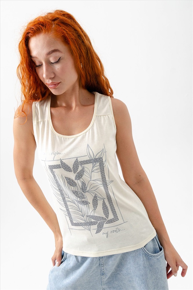 ID товара: 1026986 Состав: Хлопок 100% Сезон: Весна/Лето Фасон: Свободный крой Рукав: Короткие Вырез горловины: Круглый Рисунок: Фантазийный Вид ткани: Кулирка Страна бренда: Россия Страна производства: Россия Майка прилегающего силуэта, с округлой горловиной. Полочка с кокетками. Горловина, проймы обработаны бейкой из основного полотна. Комментарии к товару
