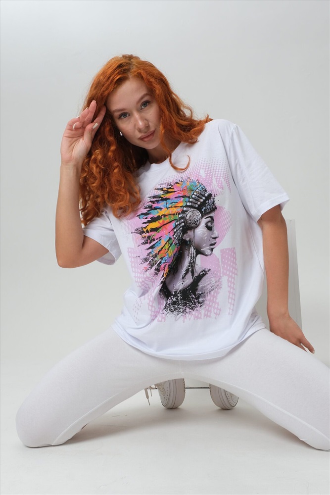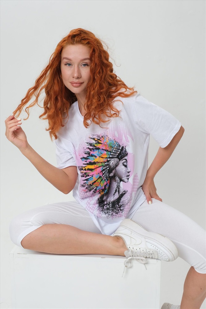 ID товара: 1019243 Состав: 100% Хлопок Сезон: Весна/Лето Фасон: Свободный крой Рукав: Короткие Вырез горловины: Круглый Рисунок: Фантазийный Вид ткани: Кулирка Страна бренда: Россия Страна производства: Россия Футболка прямая, свободная, средней длины, с округлой горловиной. Рукав короткий. Горловина обработана эластичной обтачкой. Комментарии к товару