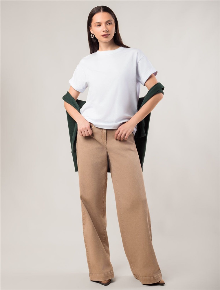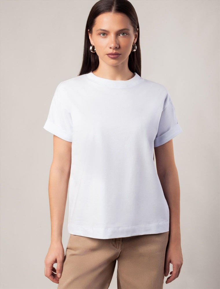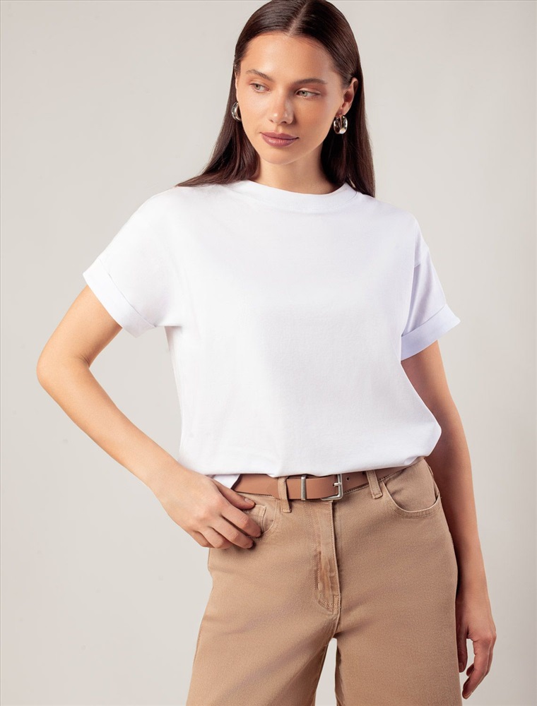 Плотность: 170 Г/м2 Параметры модели на первом фото: Рост 170, бюст 83, талия 64, бедра 88 Базовая однотонная футболка из премиального хлопка. Горловина выполнена из рибаны в тон изделия, Рукава с подворотами и золотистым логотипом бренда. Добавление эластана в состав изделия способствует формоустойчивости. Самое высокое качество хлопковых волокон обеспечивает комфорт в любое время года. Идеально держит форму и сохраняет внешний вид в течение долговременного использования. Универсальная базовая вещь для ваших стилистических решений. Комментарии к товару