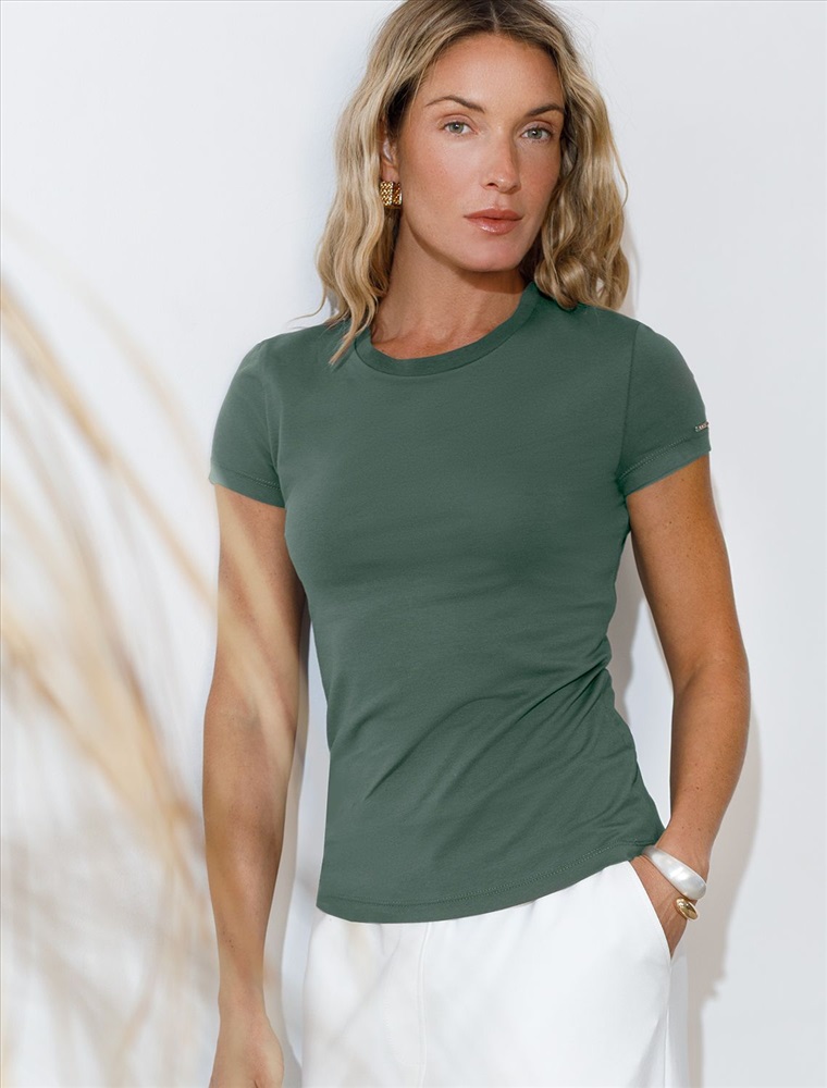 Футболка выполнена из премиального хлопка, дополнена металлическим логотипом бренда на рукаве.Модель идеально сидит по фигуре не сковывая движения. Хлопковый трикотаж поддерживает оптимальную температуру тела, поэтому в изделии будет комфортно в течении всего дня. Наличие эластана в составе гарантирует формоустойчивость. Базовая модель впишется в повседневные образы и подойдет для офисного дресс-кода.