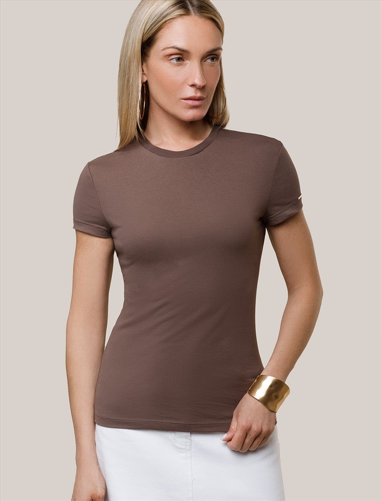 Плотность: 170 Г/м2 Футболка выполнена из премиального хлопка, дополнена металлическим логотипом бренда на рукаве.Модель идеально сидит по фигуре не сковывая движения. Хлопковый трикотаж поддерживает оптимальную температуру тела, поэтому в изделии будет комфортно в течении всего дня. Наличие эластана в составе гарантирует формоустойчивость. Базовая модель впишется в повседневные образы и подойдет для офисного дресс-кода.