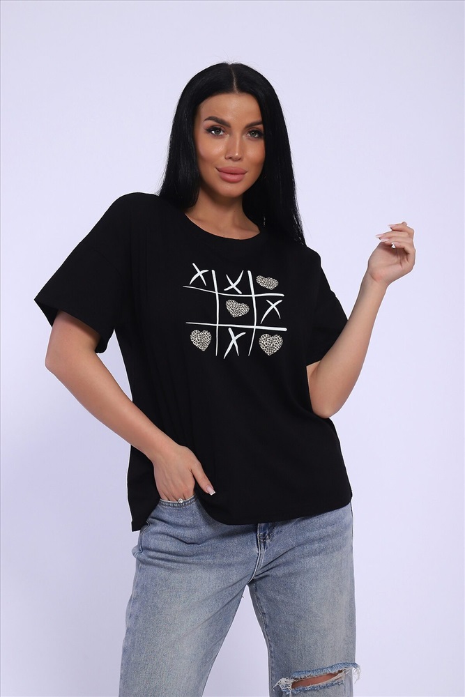 ID товара: 990047 Состав: Хлопок 100% Сезон: Весна/Лето Длина: Средняя Фасон: Свободный Рукав: короткие Вырез горловины: Округлый Рисунок: Фантазийный Декоративные элементы: Принт Основная ткань: Хлопок Стиль: повседневный Вид ткани: Кулирка Страна бренда: Россия Страна производства: Россия Футболка женская с коротким рукавом, со спущенным плечом, в стиле оверсайз. Данная модель выполнена из трикотажного полотна кулирка (хлопок). Это модель станет незаменимой частью гардероба, отлично подойдет для повседневной носки, для прогулок и отдыха. Комментарии к товару
