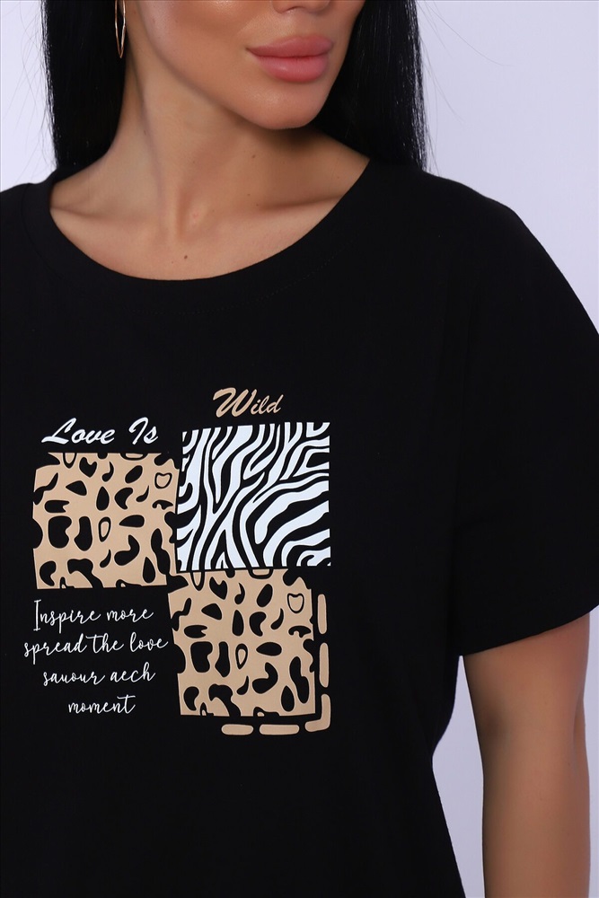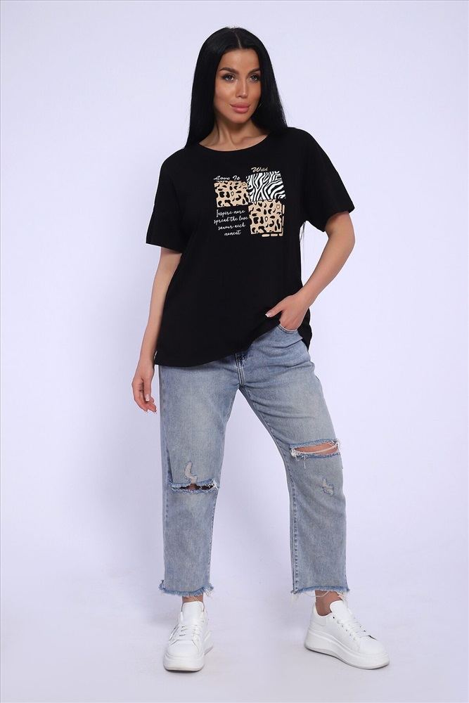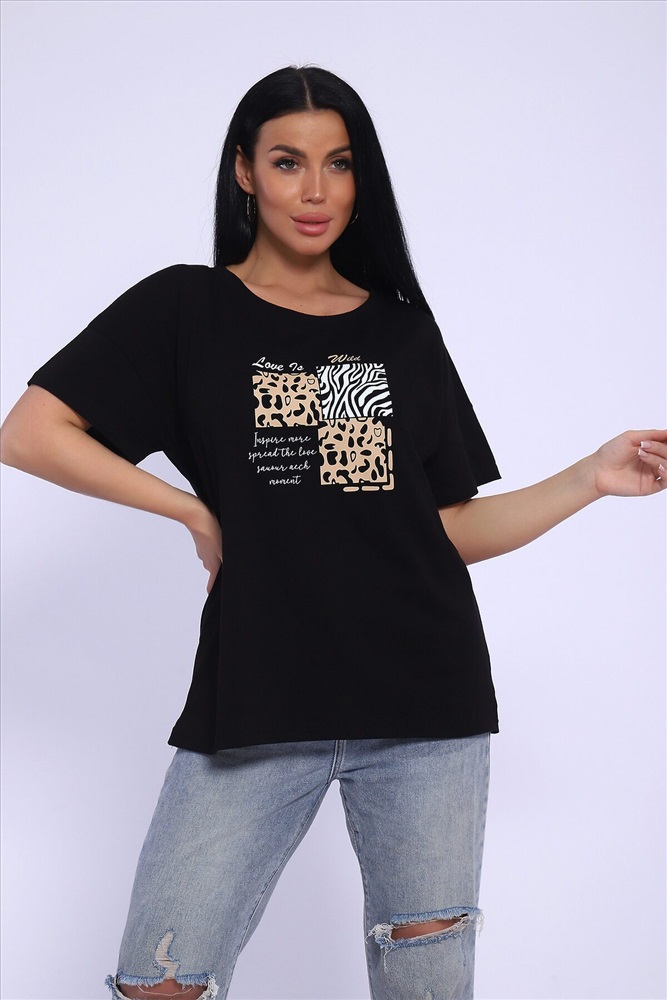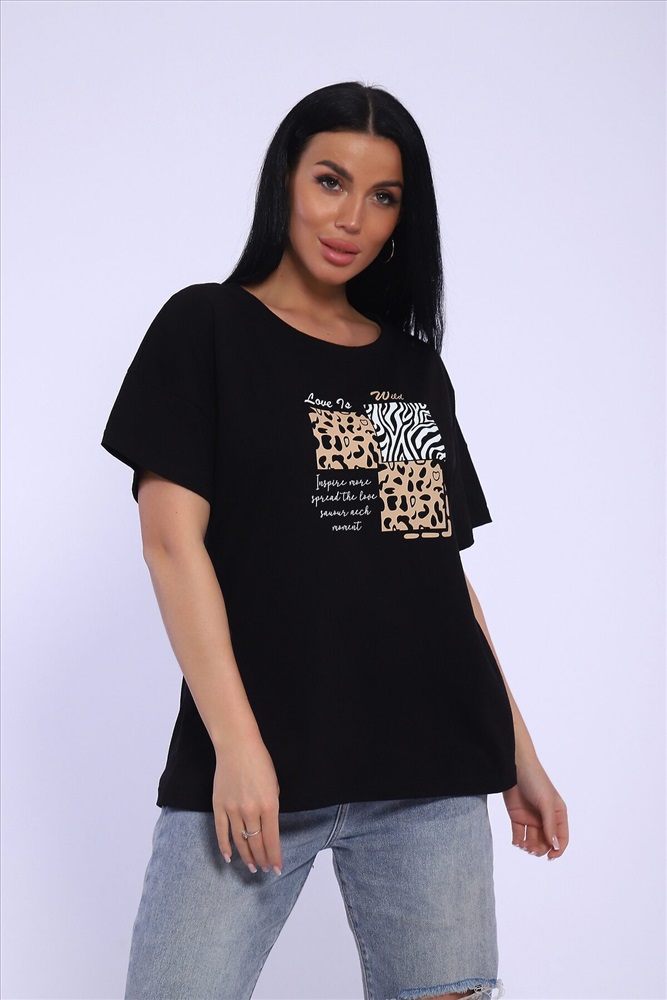 Производитель: НАТАЛИ ID товара: 990045 Состав: Хлопок 100% Сезон: Весна/Лето Длина: Средняя Фасон: Свободный Рукав: короткие Вырез горловины: Округлый Рисунок: Анималистичный Декоративные элементы: Принт Основная ткань: Хлопок Стиль: повседневный Вид ткани: Кулирка Страна бренда: Россия Страна производства: Россия