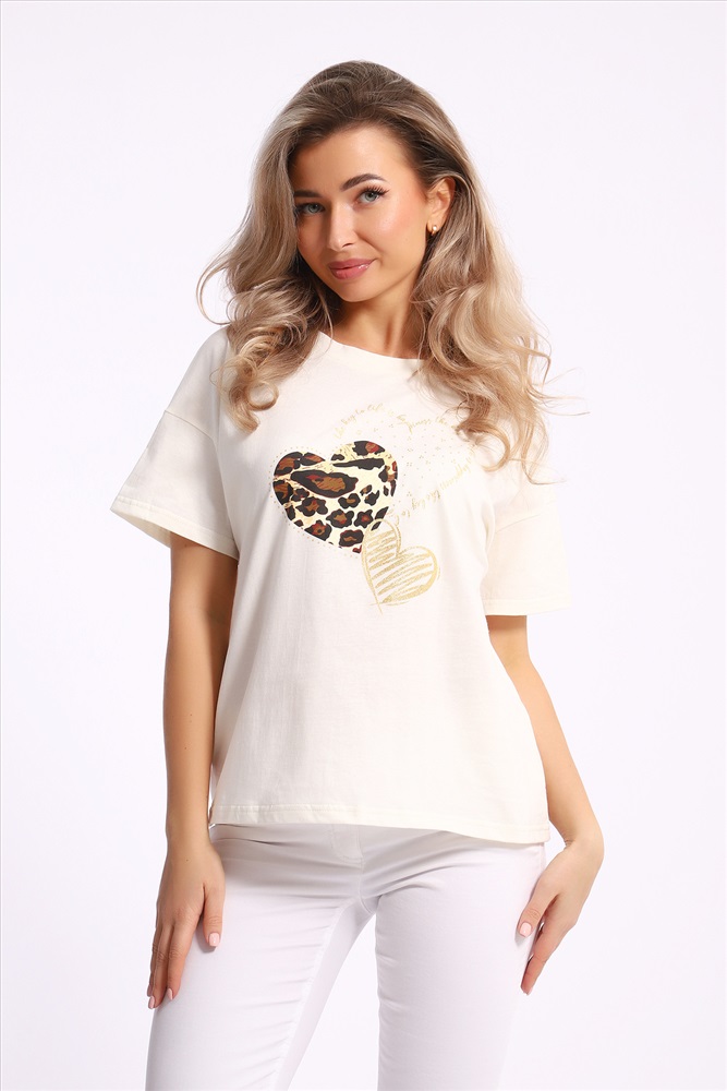 Стиль: повседневный Футболка женская со спущенным рукавом. Данная модель выполнена из трикотажного полотна кулирка ( хлопок 100%). Отличная модель для отдыха.